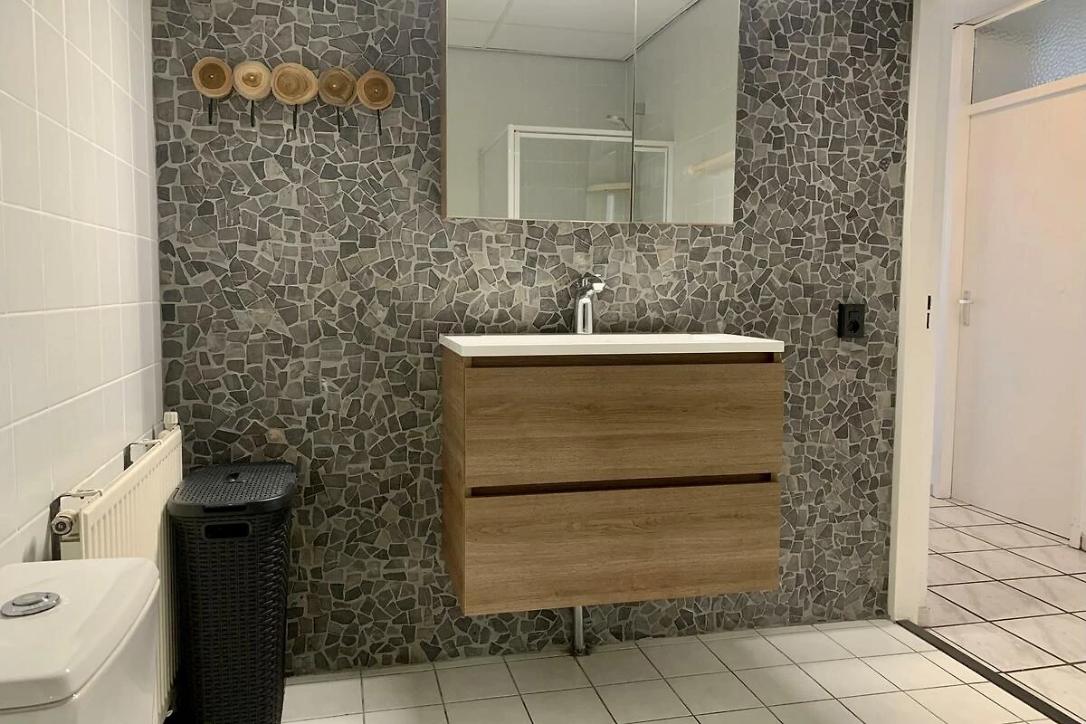 Badezimmer mit Dusche, W.C. und Waschbecken