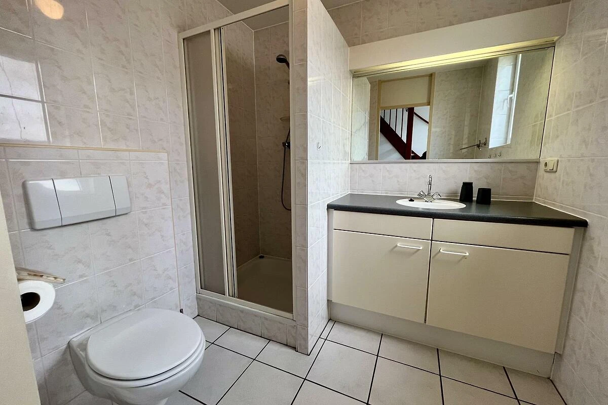 Im ersten Stock befinden sich 3 Schlafzimmer, eines mit einem Doppelbett (2 x Einzelmatratzen) und zwei mit 2 Einzelbetten. Es gibt auch eine zweite Toilette. Im Erdgeschoss befindet sich das geräumige Badezimmer mit Dusche, Waschbecken und Toilette.