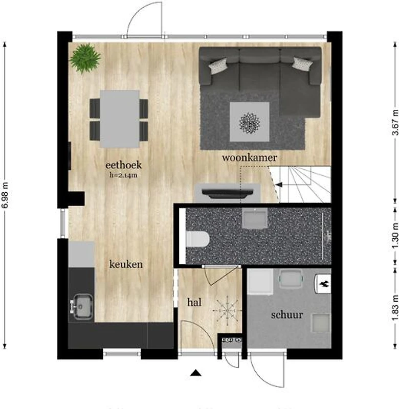 Das Wohnzimmer ist geschmackvoll und modern eingerichtet. Auf dem komfortablen Ecksofa im Wohnzimmer ist Platz für 3 Personen. Das Wohnzimmer verfügt über einen Smart-TV mit Niederländisch und Deutsch TV-Kanäle von Ziggo.