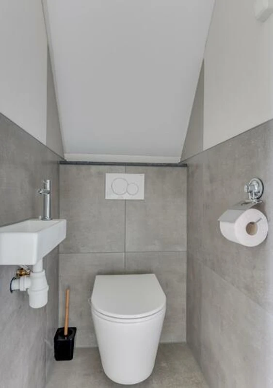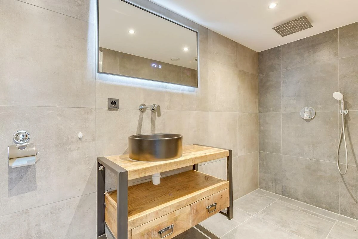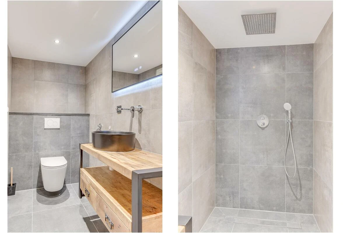 Die Unterkunft verfügt über ein sehr modernes Badezimmer mit einer grossen Regendusche. Das Badezimmer hat auch eine Toilette und ein Waschbecken. Es gibt eine zweite Toilette im 1. Stock.