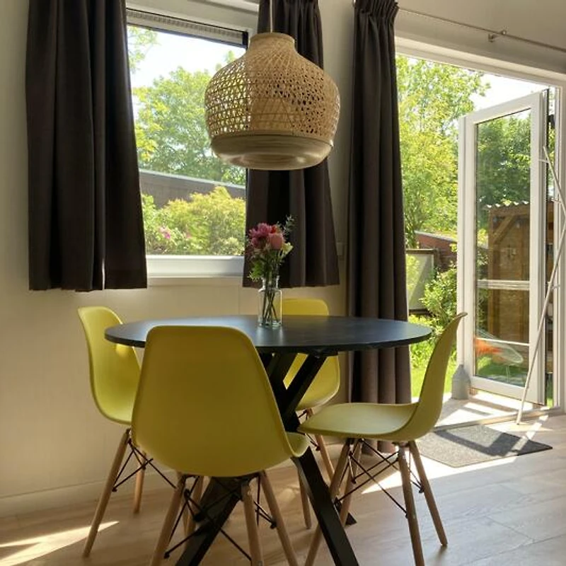 Das Wohnzimmer ist modern, hell und geschmackvoll eingerichtet. Von der gemütlichen Sitzecke aus haben Sie einen Blick auf den schönen Garten. Es gibt einen Smart-TV mit niederländischen und deutschen TV-Kanälen. Die offene Küche ist komplett ausgestattet mit Gasherd, Geschirrspüler, Kühlschrank mit Gefrierfach, Kombimikrowelle, Wasserkocher und Nespresso-Maschine.