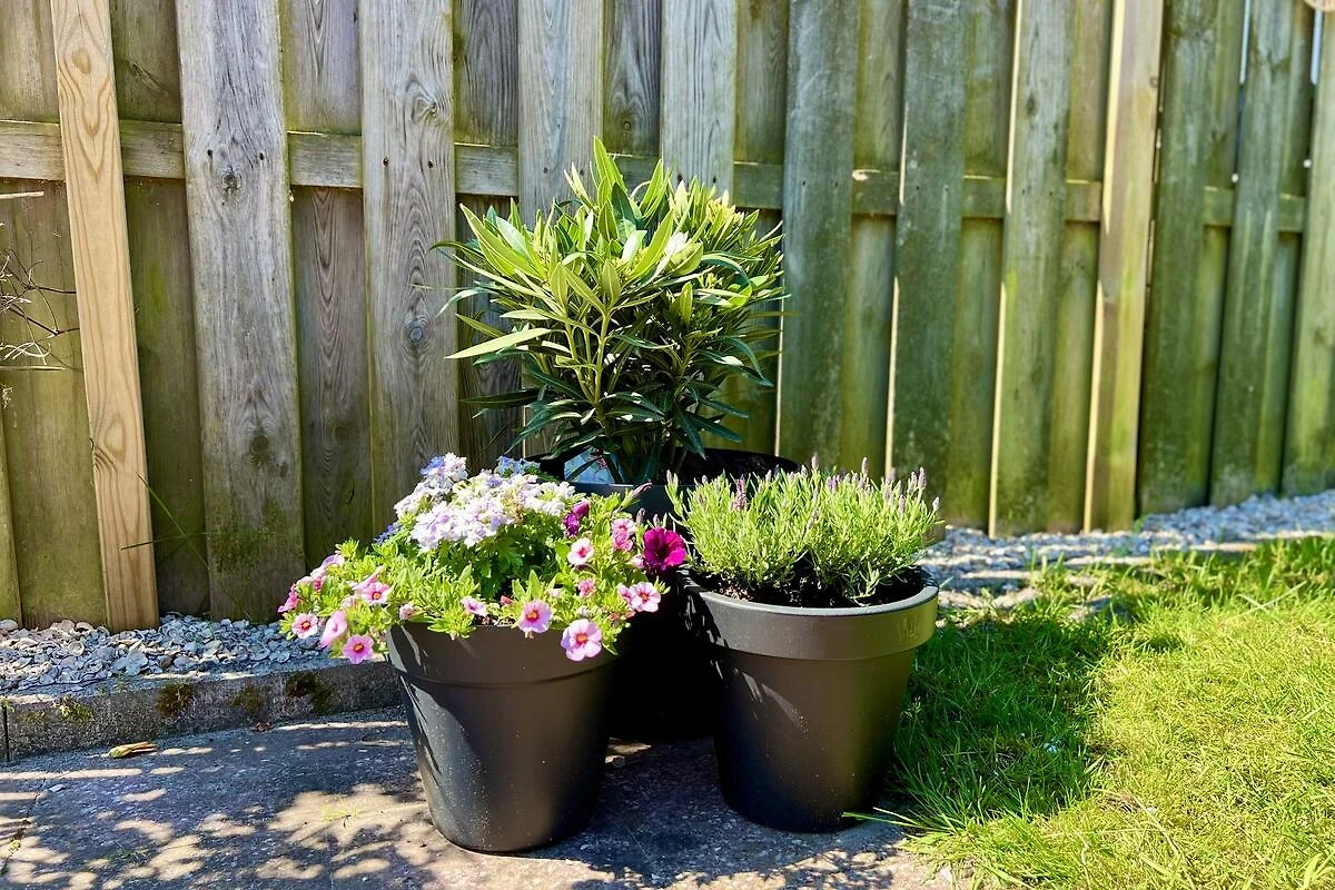 Um das Haus herum befindet sich ein schöner, grosser Garten (200 m2) mit einer gefliesten, nach Süden ausgerichteten Terrasse mit Vordach (an das Haus angebaut) mit Gartentisch und 6 Gartenstühlen sowie einer Rasenfläche mit zwei Sonnenliegen. Es gibt auch ein abschliessbares Gartenhaus für Ihre Nutzung.