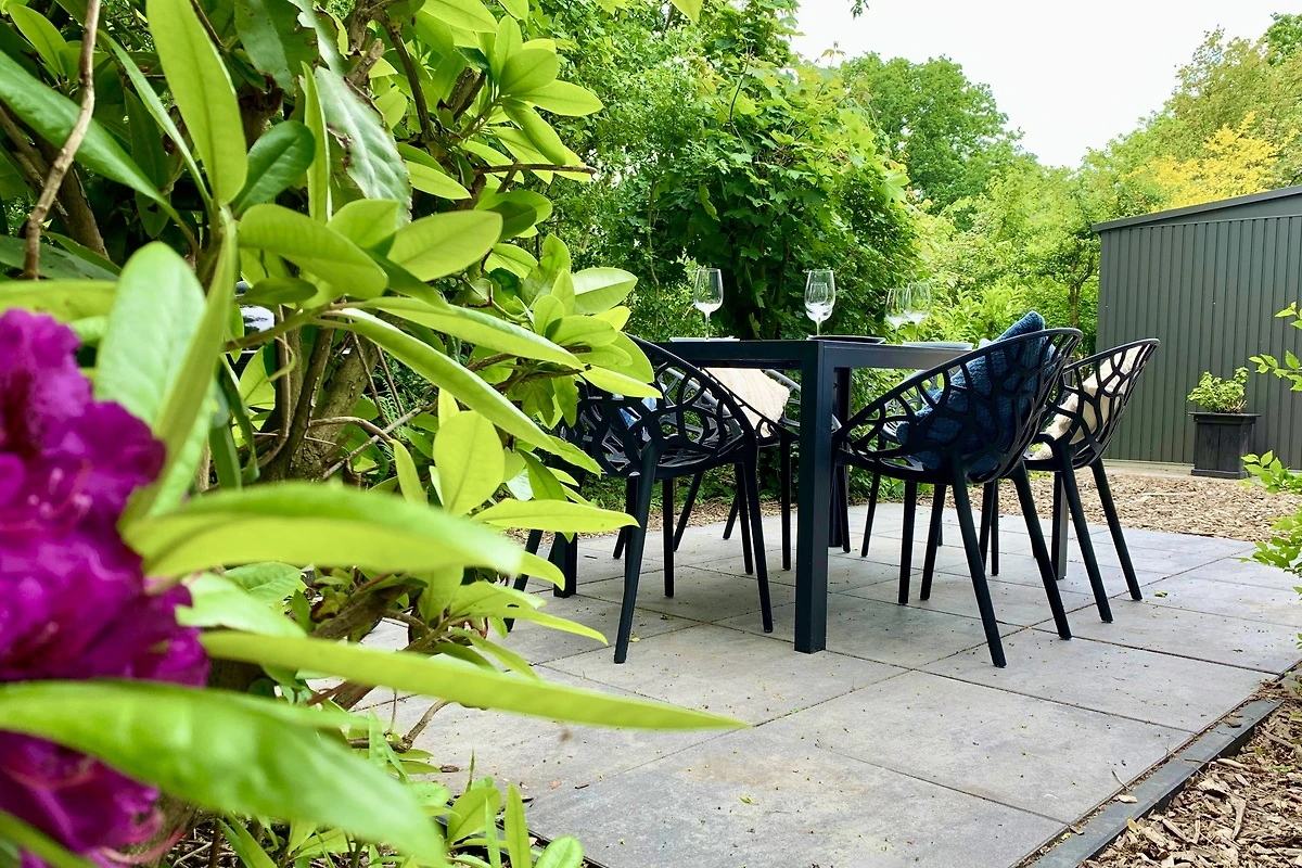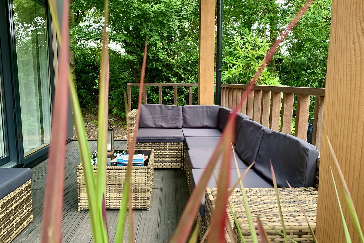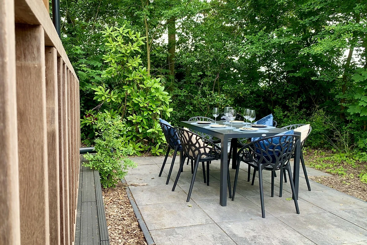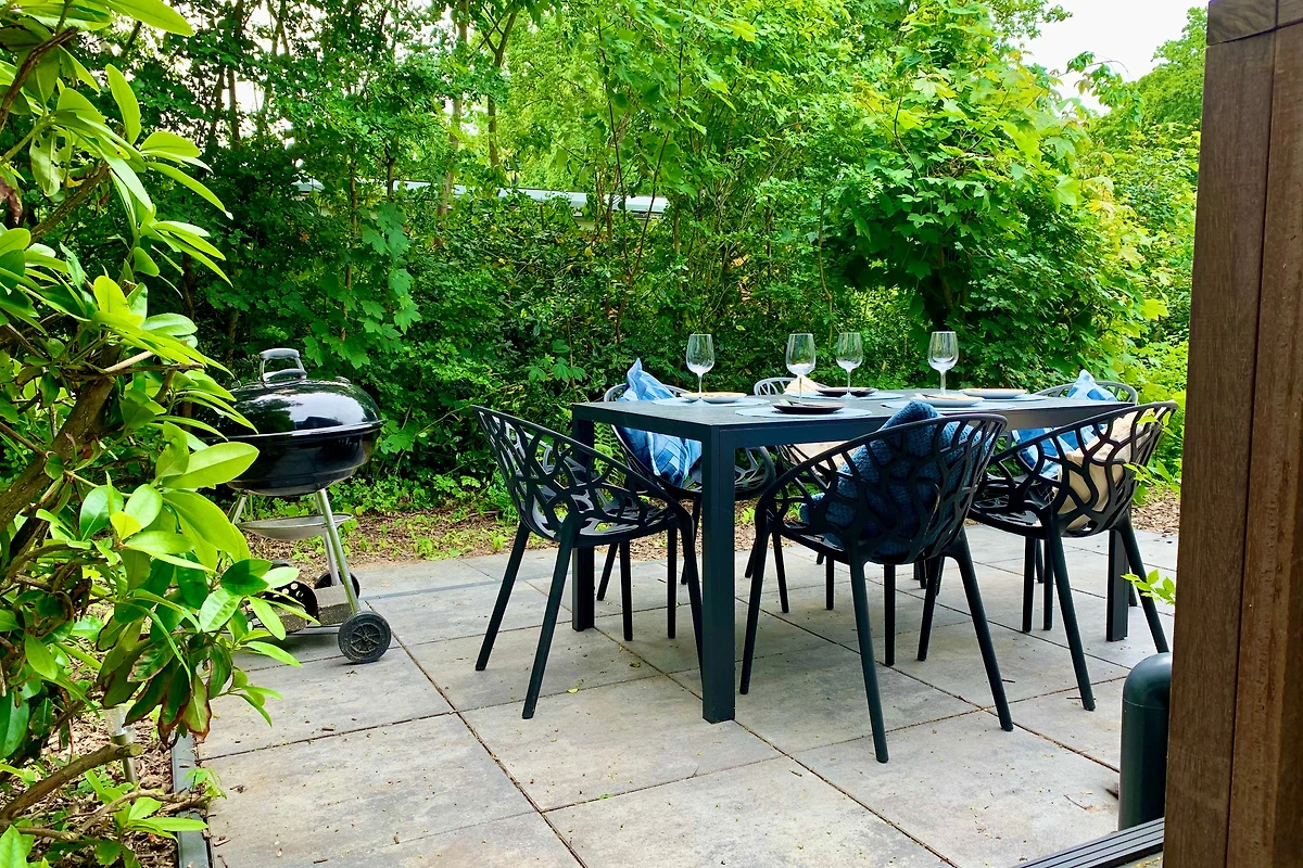 Es gibt eine Terrasse mit Gartentisch und 6 Gartenstühlen, auf der überdachten Veranda mit gemütlichem Loungesofa können Sie bei jedem Wetter den Aufenthalt im Freien geniessen. Das Chalet liegt am Rande des Parks, umgeben von Grünflächen. Im Frühling haben Sie vom Garten und vom Wohnzimmer aus einen schönen Blick auf die Zwiebelfelder. Seit Februar 2025 gibt es am Chalet einen Schuppen, in dem Sie z.B. Ihre (Elektro-)Fahrräder unterstellen können, mit Stromanschluss zum Aufladen der Fahrräder.