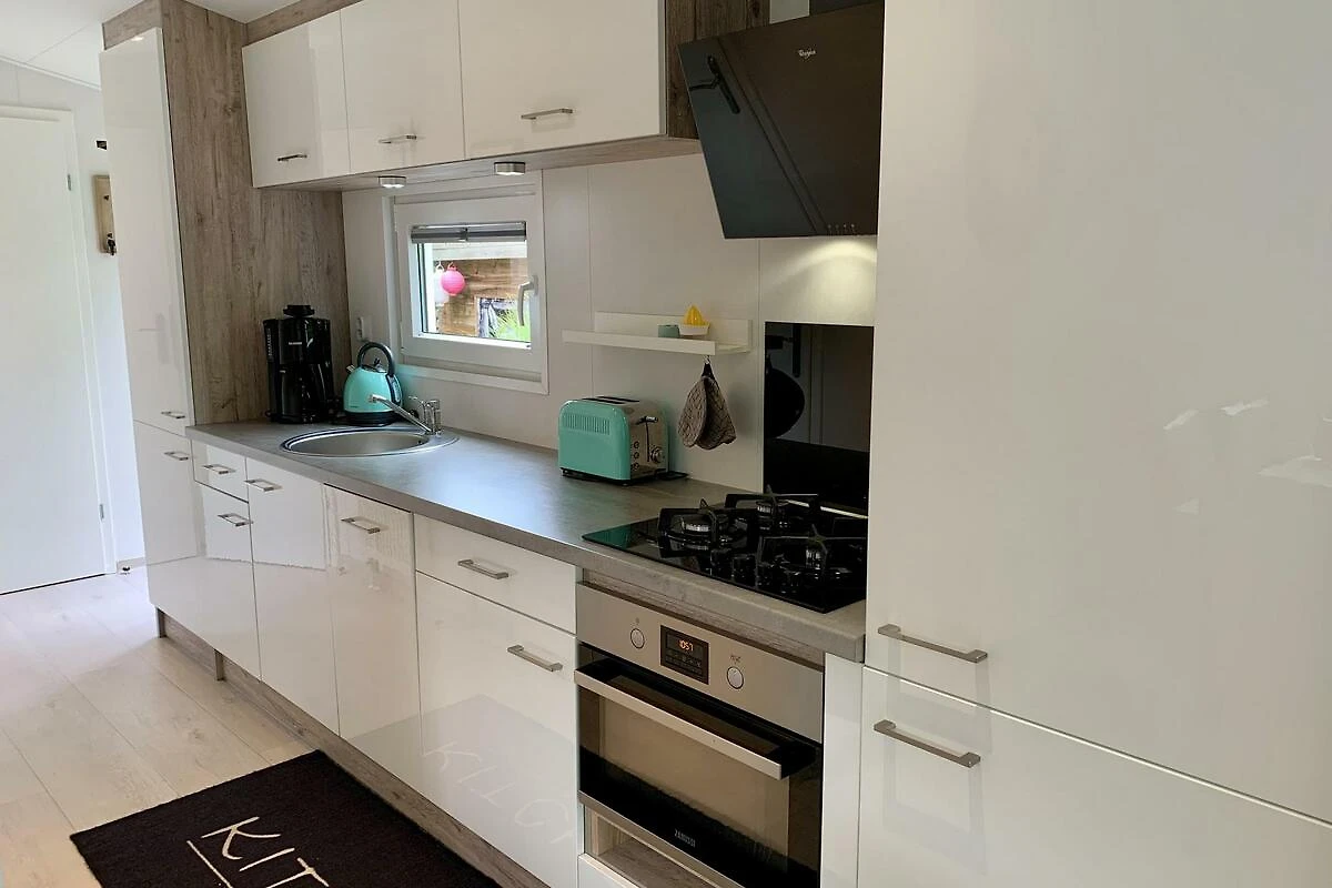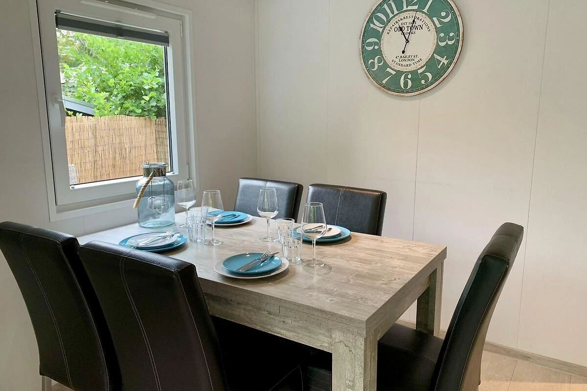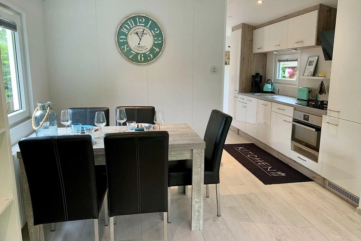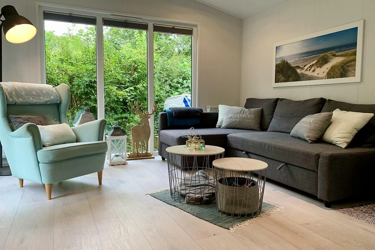 Nur wenige Minuten mit dem Fahrrad vom schönen Sandstrand von Sint Maartenszee entfernt, bietet der Bungalowpark Campanula dieses schöne, geräumige Chalet Nr. 191 mit 2 Schlafzimmern, modernem Badezimmer und erhöhter Terrasse an einem schönen Ort im Grünen. Die EinrichtungWohnzimmer und Küche