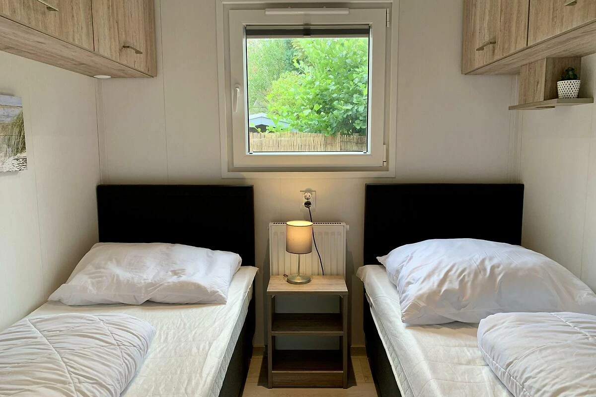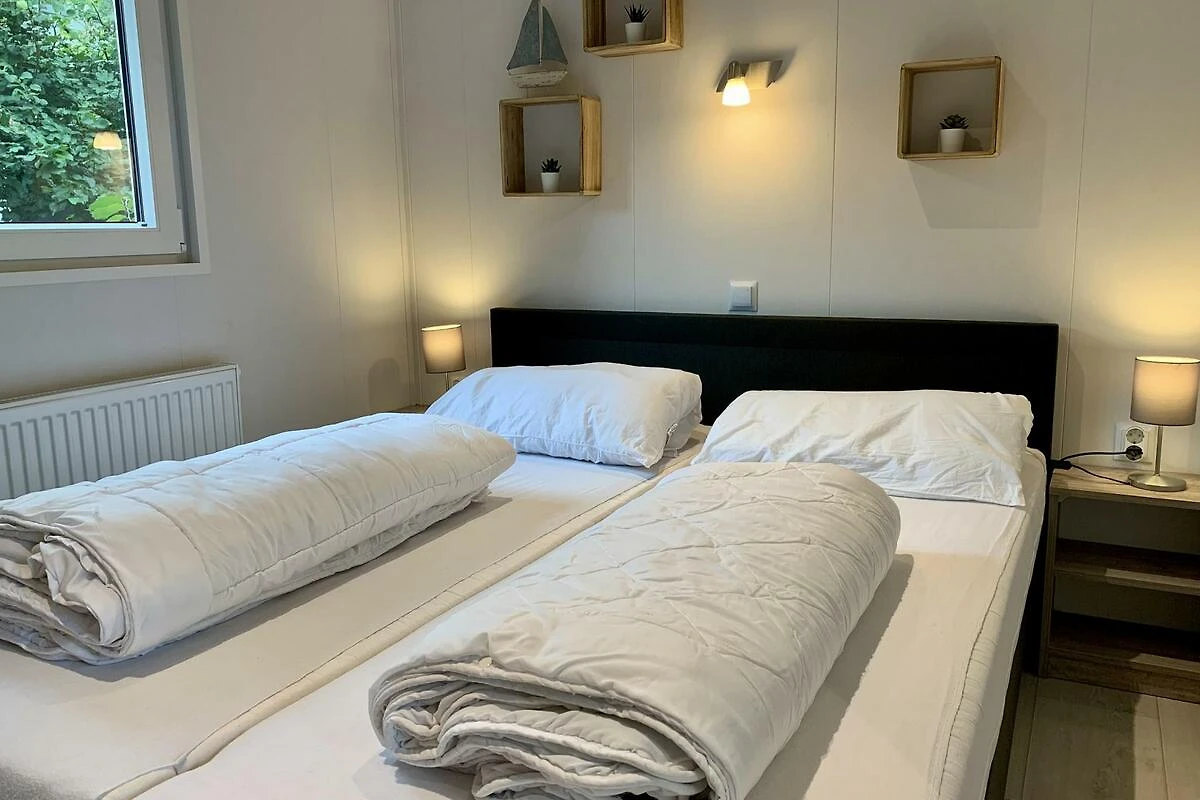 Es gibt 2 Schlafzimmer. Schlafzimmer 1 hat ein 2-Personen-Boxspringbett (2 separate 80 x 200 cm Matratzen und 1-Personen-Bettdecken), Schlafzimmer 2 hat 2 Boxspringbetten (80 x 200 cm).