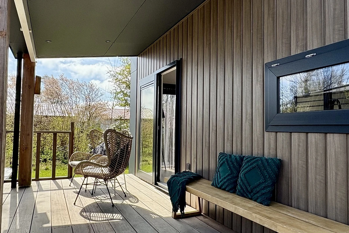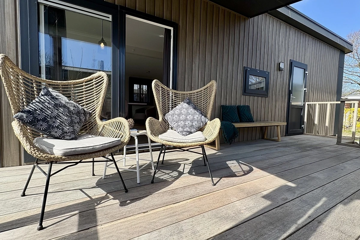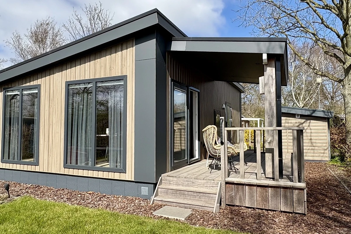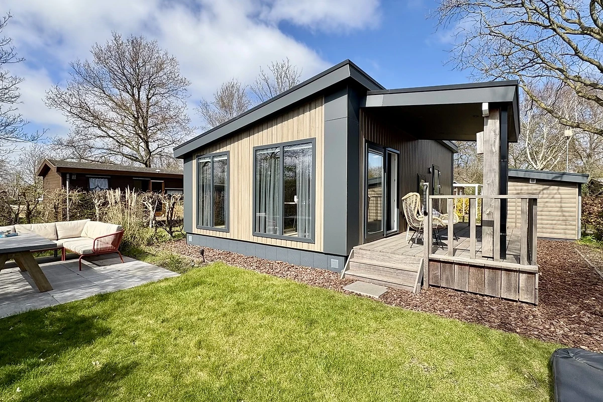 In Fahrradentfernung vom schönen Sandstrand von Sint Maartenszee, auf dem Bungalowpark Campanula, finden Sie dieses schöne, moderne Chalet Nr. 227 mit 2 Schlafzimmern, einer gemütlichen Veranda und einem schönen Garten mit Rasen. Luxuriös, stilvoll und modern Dank der hohen Decken, der hochwertigen, hellen Ausstattung, der Verwendung vieler natürlicher Materialien und Farben und der grossen Fenster erleben Sie viel Licht und Raum. Ein Chalet, das sich wie ein richtiges Zuhause anfühlt. Die Aussenseite ist modern mit Holz verkleidet, was dem Chalet ein natürliches und luxuriöses Aussehen verleiht. Auf der überdachten Veranda können Sie sich bei jedem Wetter im Freien aufhalten.