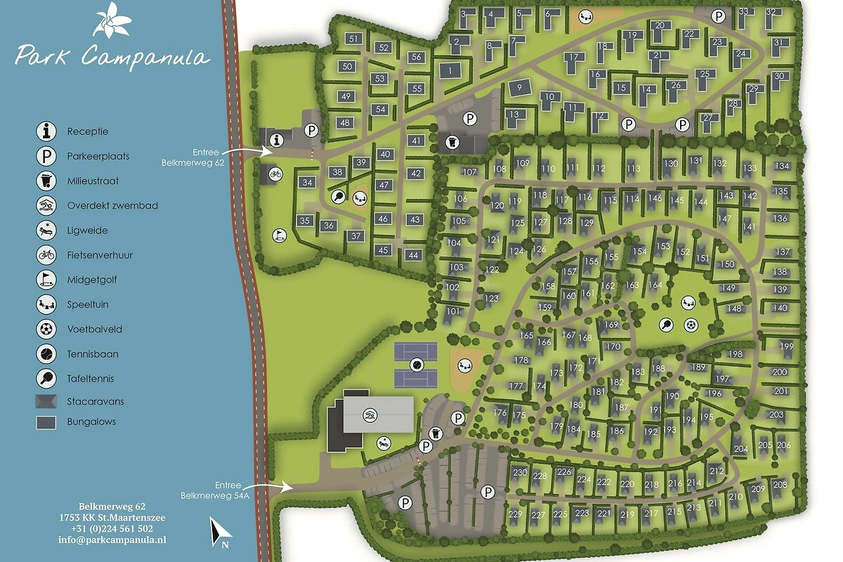 Der Park verfügt über ein Hallenbad, zu dem die Mieter des Chalets freien Zugang haben. Die anderen Einrichtungen von Campanula können von den Gästen gegen eine Gebühr genutzt werden. (Sauna, Minigolf, Waschsalon)