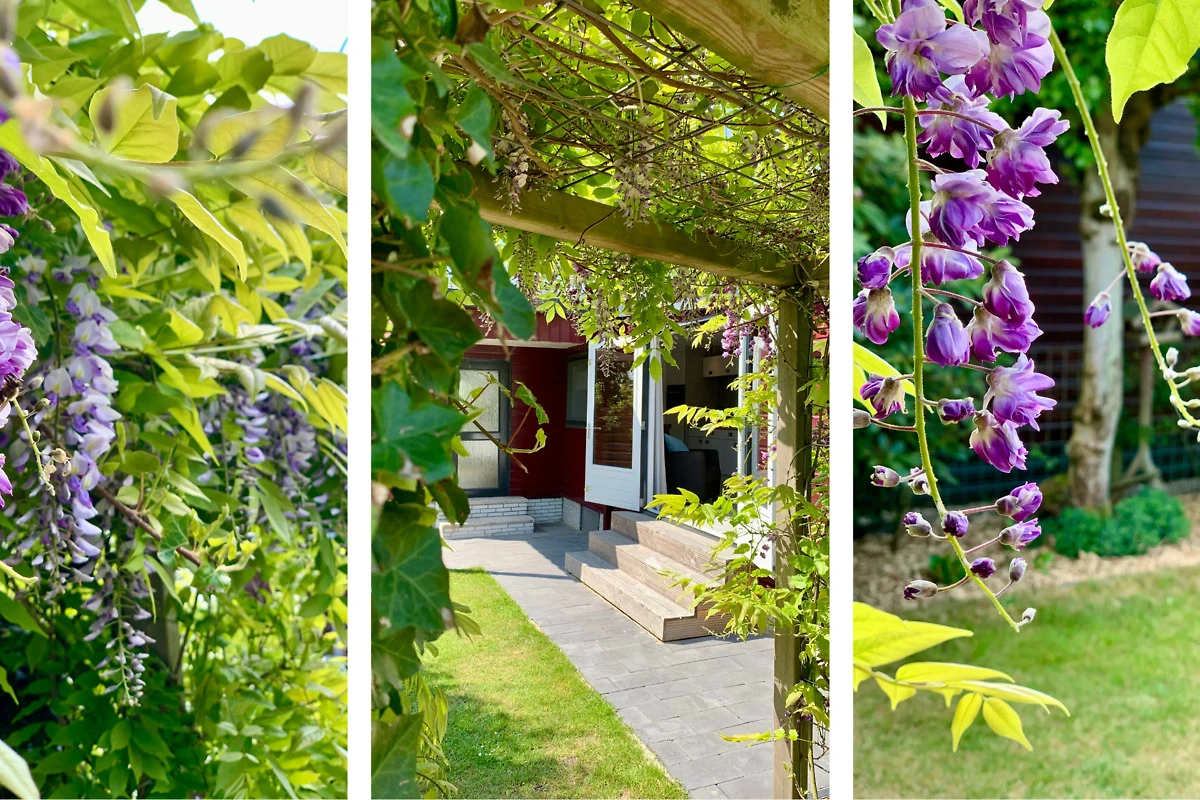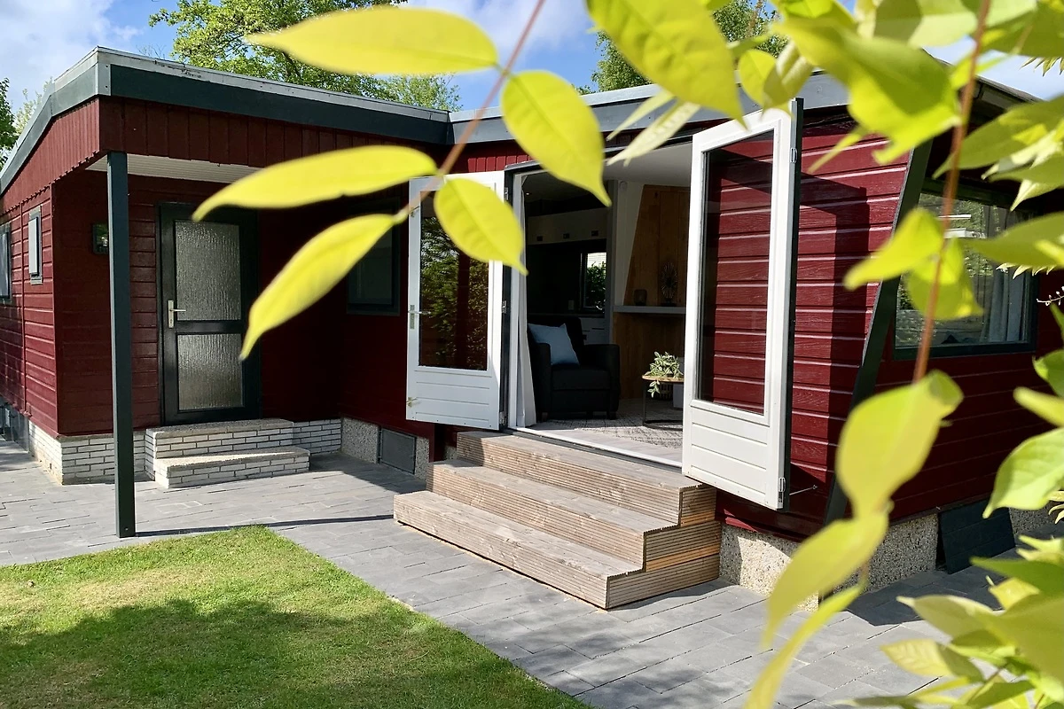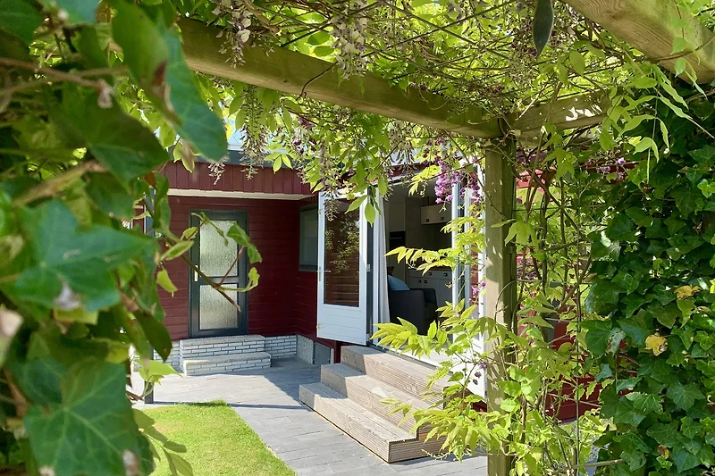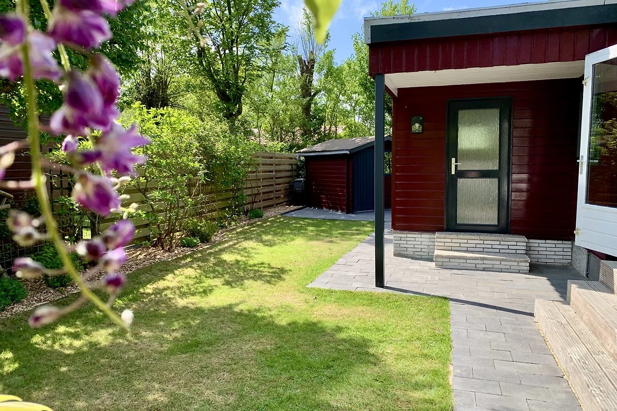 Vom Chalet aus gelangen Sie direkt in den schönen, vollständig umzäunten Garten mit Rasen. Das Chalet liegt im hinteren Teil des Parks in einer Ecke und bietet Ihnen viel Privatsphäre und Ruhe.