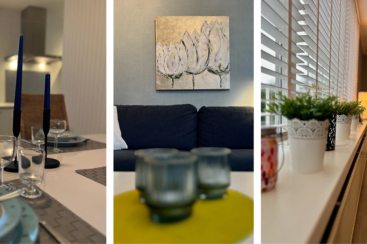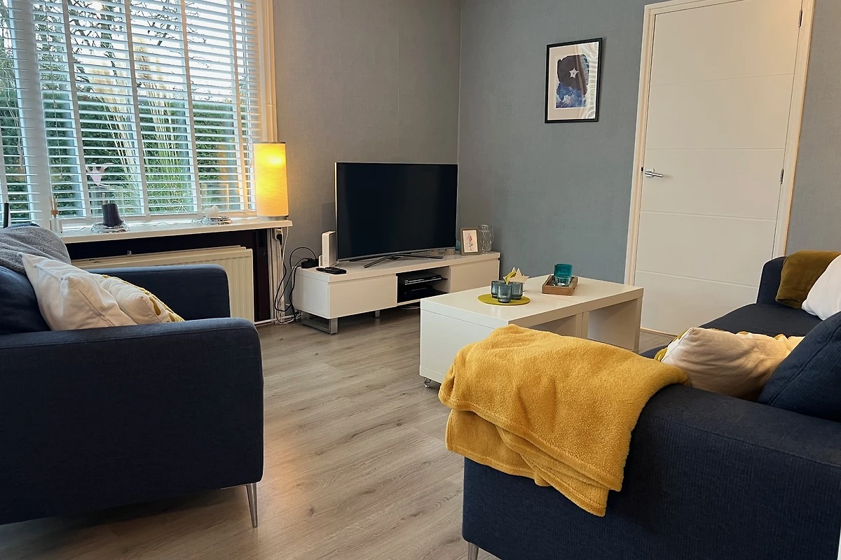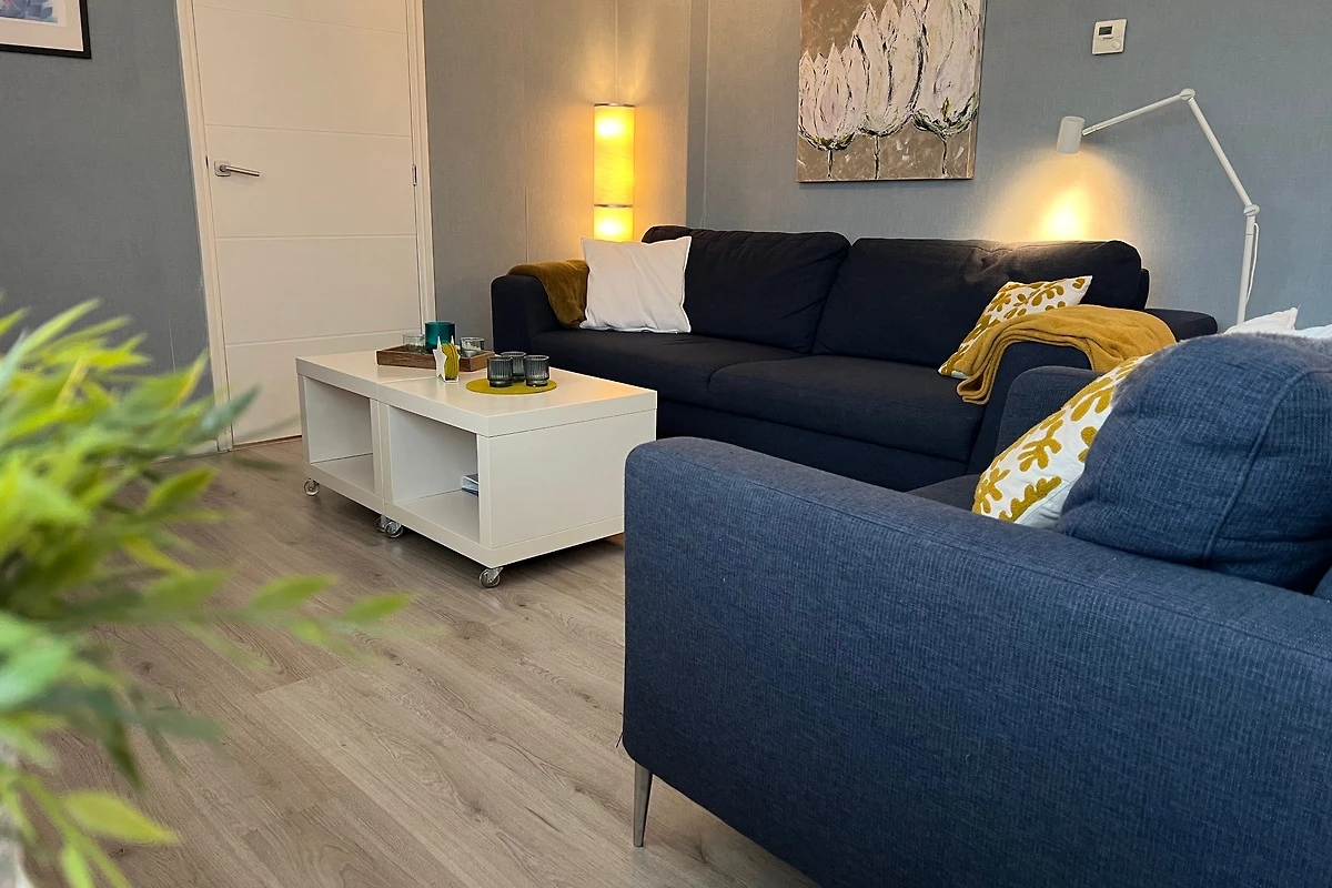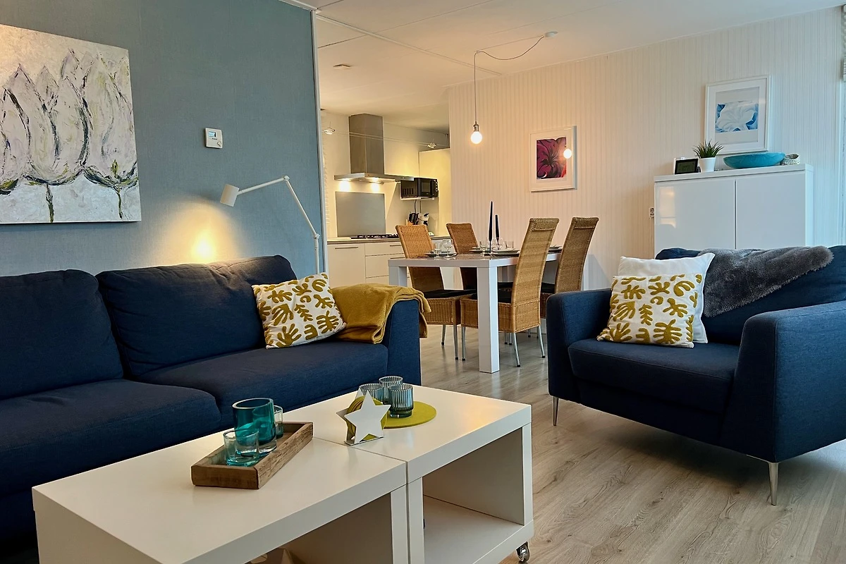 Das geräumige Wohnzimmer mit 3-Sitzer-Sofa, Sessel und Rattanmöbel ist lichtdurchflutet. Es ist mit einem Laminat-Boden ausgestattet. Es gibt einen Smart-TV mit niederländischen und deutschen TV-Kanälen. Die offene Küche ist komplett ausgestattet, darunter ein Gasherd mit Dunstabzugshaube, Geschirrspüler, Kaffeemaschine, Backofen und Mikrowelle, Toaster, Wasserkocher sowie ein grosser Kühlschrank mit 3 Gefrierfächer. Vom Küchentisch aus haben Sie im Frühling einen schönen Blick auf die Blumenzwiebelfelder.