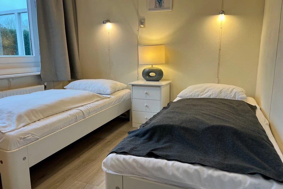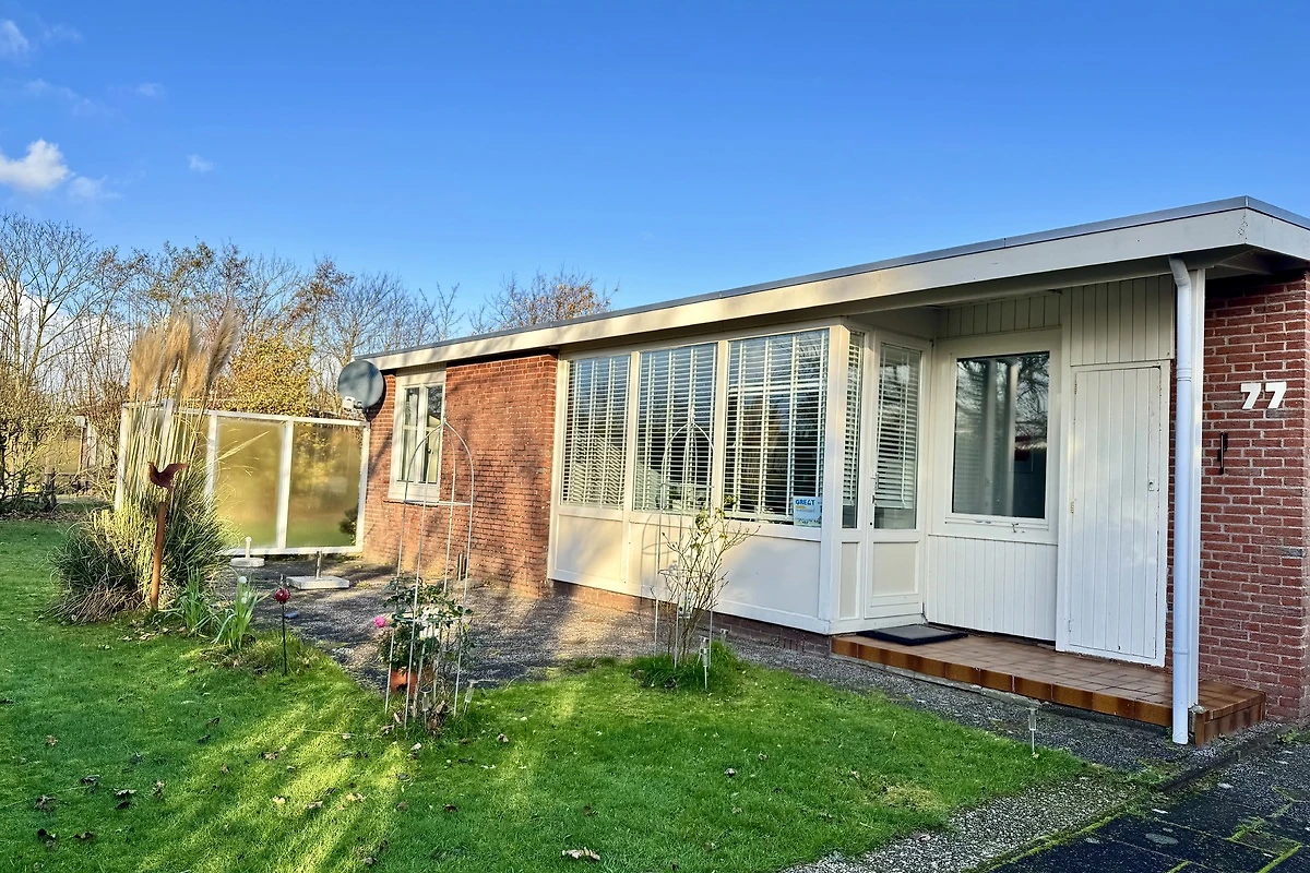 Dieser geräumige Bungalow mit einer Wohnfläche von 65 m2 verfügt über 2 Schlafzimmer und ist für bis zu 4 Personen geeignet. Es gibt ein geräumiges Wohnzimmer mit überraschender grossen offenen Küche, ein Badezimmer mit Dusche, eine separate Toilette und einen abstellraum erreichbar