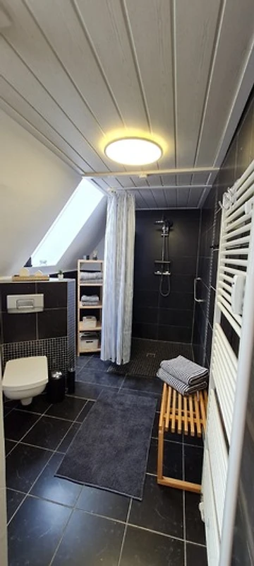 Die Ferienwohnung ist nahezu barrierefrei gestaltet und verfügt über einen Treppenlift sowie einen breiten Zugang zur Dusche.