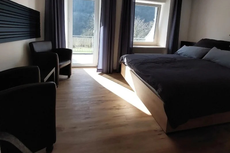 Besonders beliebt bei den Gästen des Doppelzimmers: der schöne Balkon. Sie haben ein Auto dabei? Ein PKW - Stellplatz gehört zu dem Doppelzimmer.