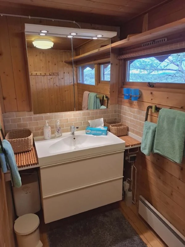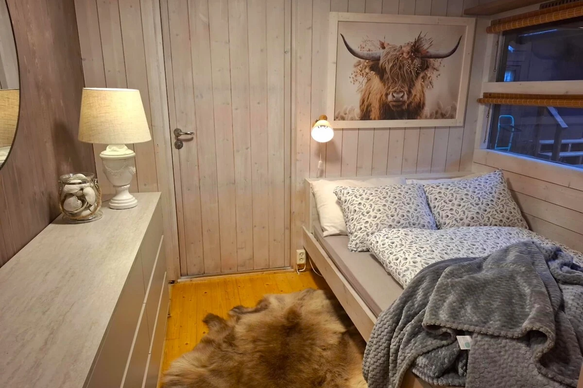 Willkommen in der Hytte Belsvika in Hellandsjøen – Ihrem Rückzugsort für entspannte Urlaubstage. Die Hütte bietet auf 50 m² Platz für bis zu 4 Gäste und verfügt über drei Schlafzimmer sowie zwei Badezimmer. Genießen Sie gesellige Stunden auf der Terrasse oder dem Balkon mit Blick auf die Trondheimsleia. Ein eigener Parkplatz steht Ihnen zur Verfügung, sodass die Anreise unkompliziert ist. Für kulinarische Erlebnisse sorgt der BBQ-Grill, und die voll ausgestattete Küchenzeile (wird gerade montiert) lässt keine Wünsche offen: Geschirrspüler, Mikrowelle, Wasserkocher und Kaffeemaschine sind selbstverständlich vorhanden. Nach einem aktiven Tag lädt der Kamin zu behaglichen Abenden ein, während die Sauna für wohltuende Entspannung sorgt. Hochwertige Bettwäsche liegt bereit, und eine Waschmaschine steht Ihnen ebenso zur Nutzung zur Verfügung. Für Unterhaltung bieten smart-TV und kostenloses WLAN beste Voraussetzungen. Hytte Belsvika eignet sich auch bestens für längere Aufenthalte. Das Interieur besticht durch einen charmanten Mix aus Holz und modernen Annehmlichkeiten, der ein Gefühl von Geborgenheit vermittelt. Erleben Sie erholsame Tage inmitten norwegischer Natur und lassen Sie die Seele baumeln.