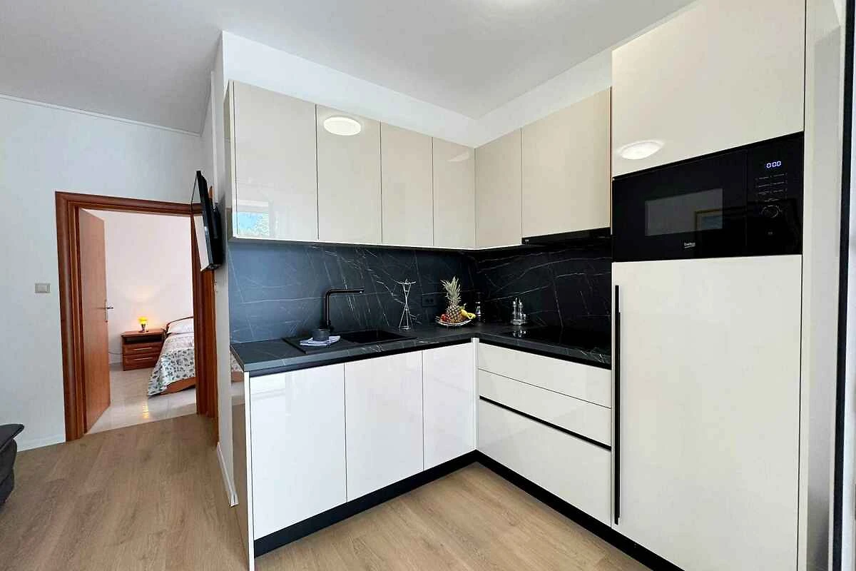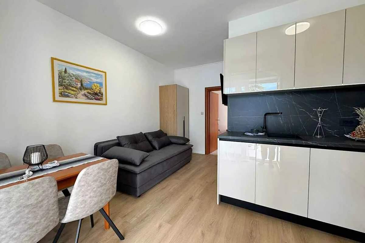 Die Wohnung verfügt über ein Schlafzimmer mit einem Doppelbett und bietet Platz für zwei Personen. Insgesamt ist die Unterkunft für bis zu vier Gäste geeignet, wobei zwei zusätzliche Schlafmöglichkeiten im Wohn- oder Essbereich vorhanden sind.