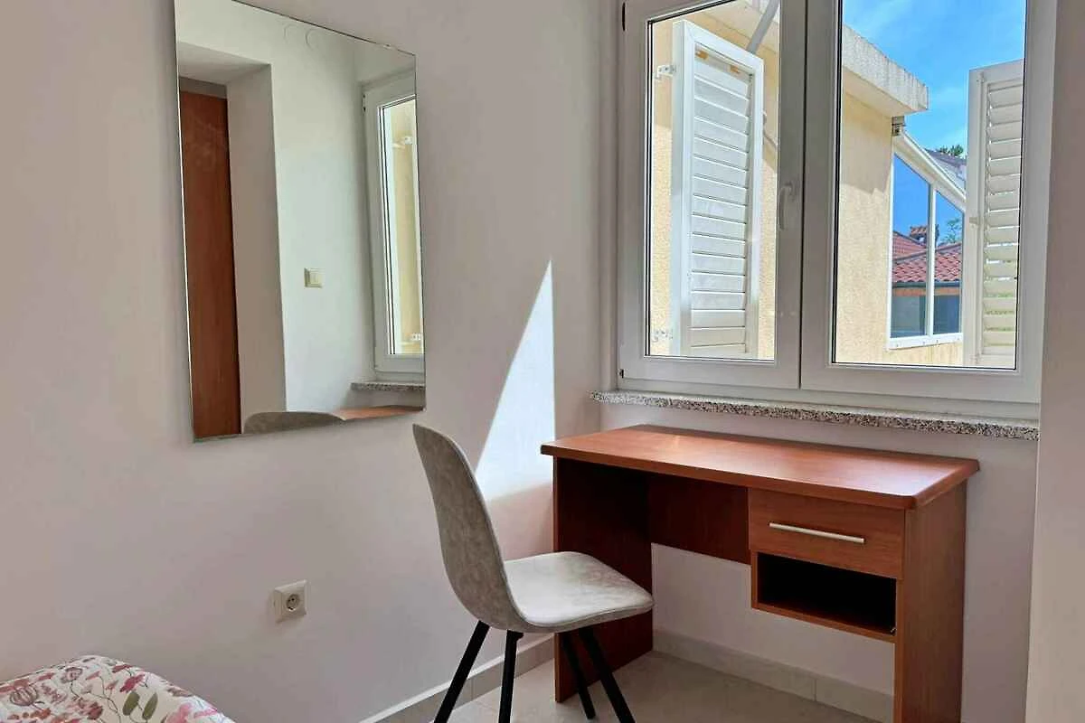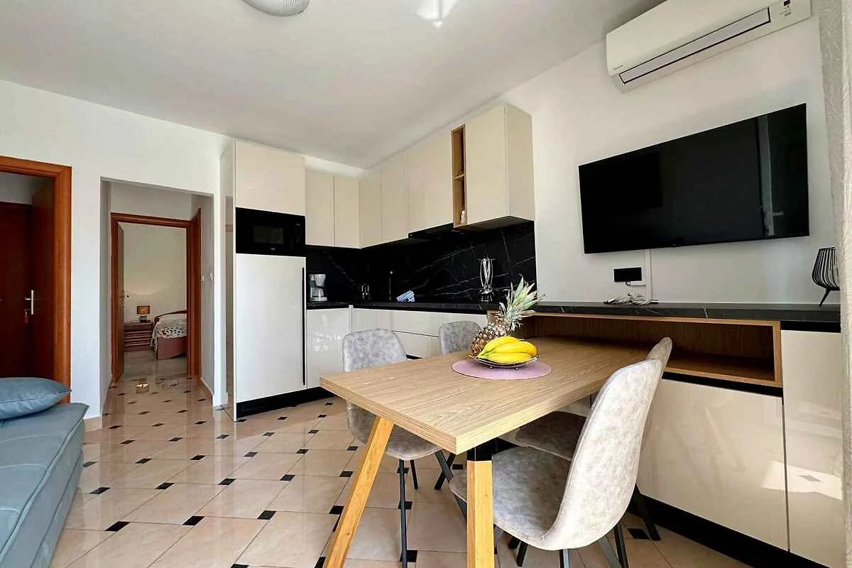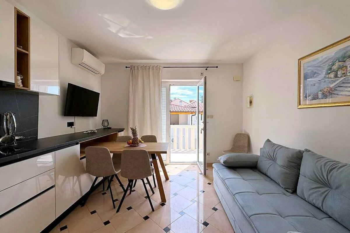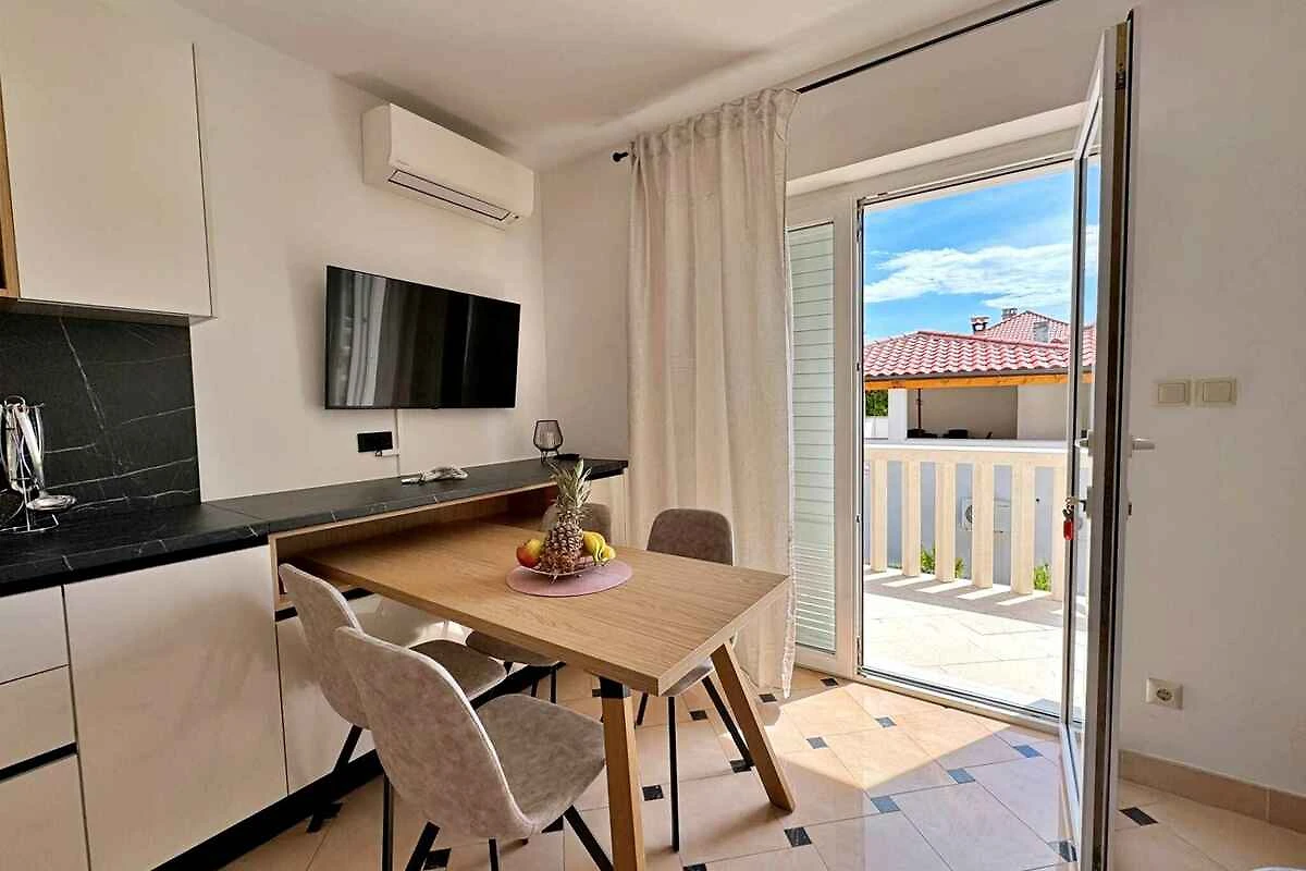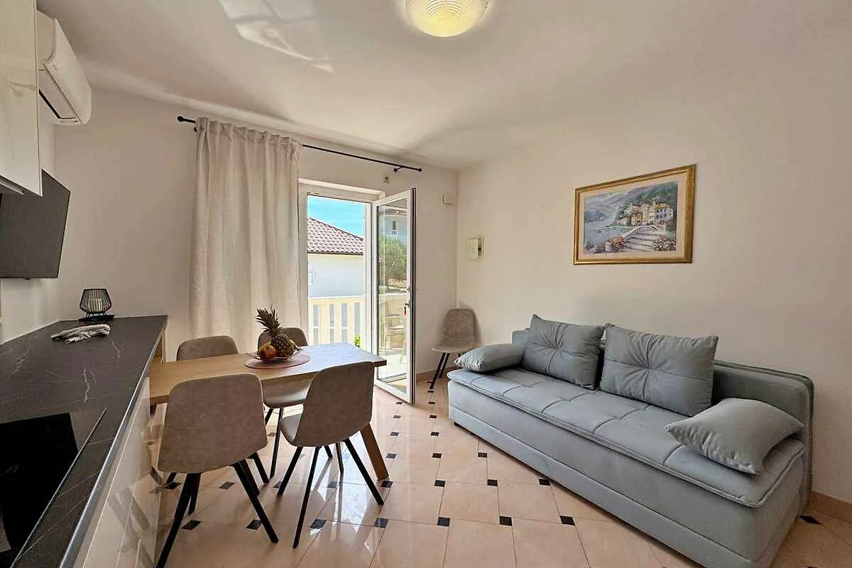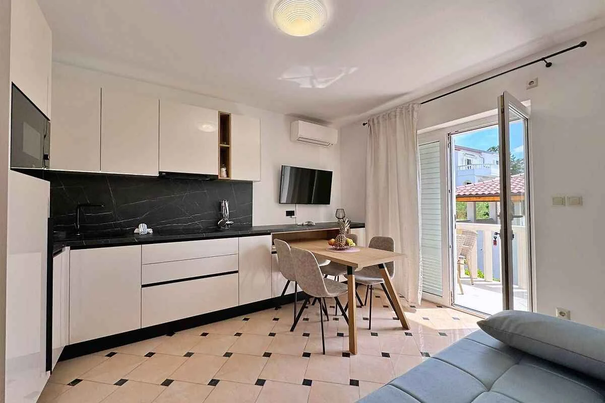 Das Appartement Scheich in Šilo auf der Insel Krk bietet Platz für bis zu vier Personen und besticht durch seine ruhige Lage nur 40 Meter vom schönen Sand- und Betonbodenstrand entfernt. Freuen Sie sich auf eine voll ausgestattete Unterkunft mit kostenfreiem Internet und Klimaanlage sowie einen gemütlichen Balkon mit Meer- und Grünblick. Geniessen Sie entspannte Abende beim Grillen und entdecken Sie die malerische Umgebung fernab von Menschenmassen.
