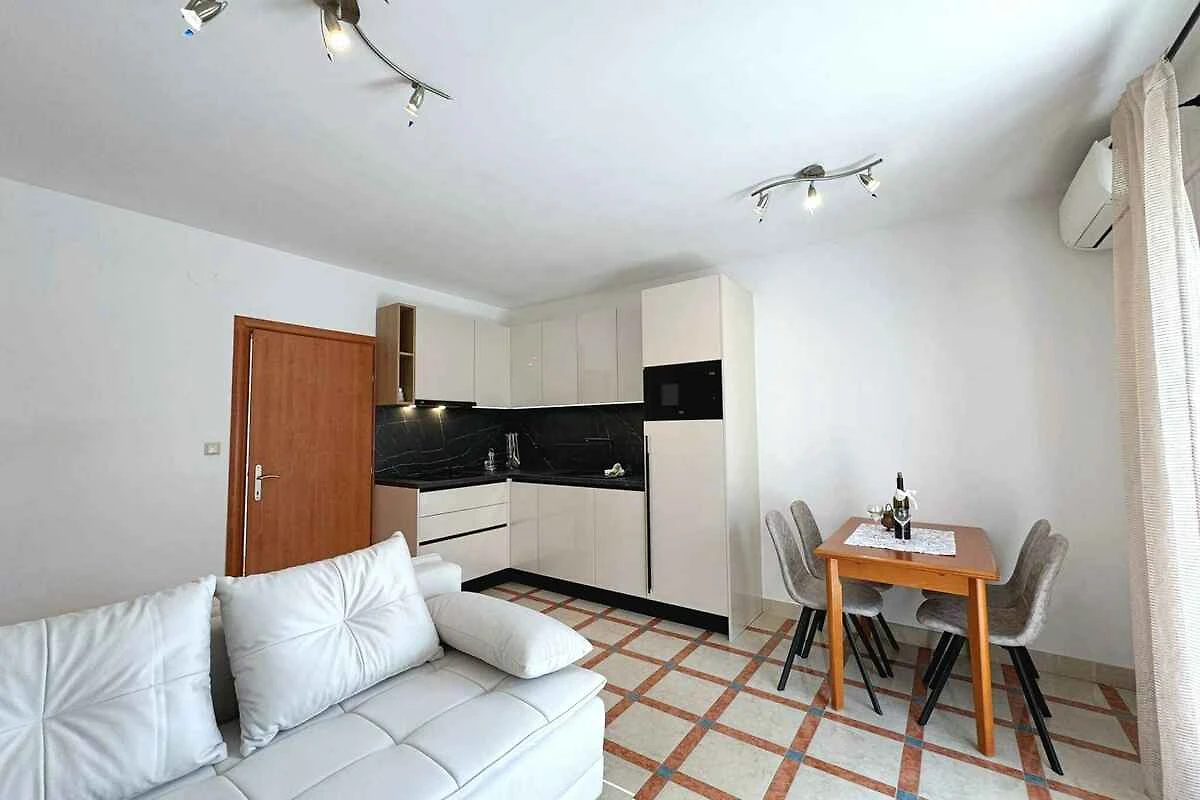 Das Apartment Scheich in Šilo bietet Platz für bis zu vier Personen und begeistert mit seiner ruhigen Lage nur 40 Meter vom Sand- und Betonstrand entfernt. Ein eigener Balkon mit sechs Quadratmetern Fläche lädt zum Entspannen bei Meer- und Grünblick ein. Dank kostenfreiem Internet und einer voll ausgestatteten Küche mit Grillmöglichkeit können Gäste unbeschwerte Stunden mit Familie und Freunden verbringen.