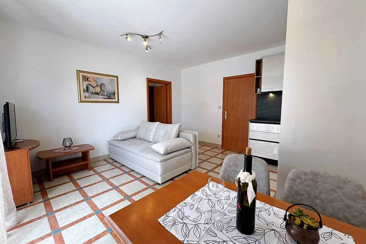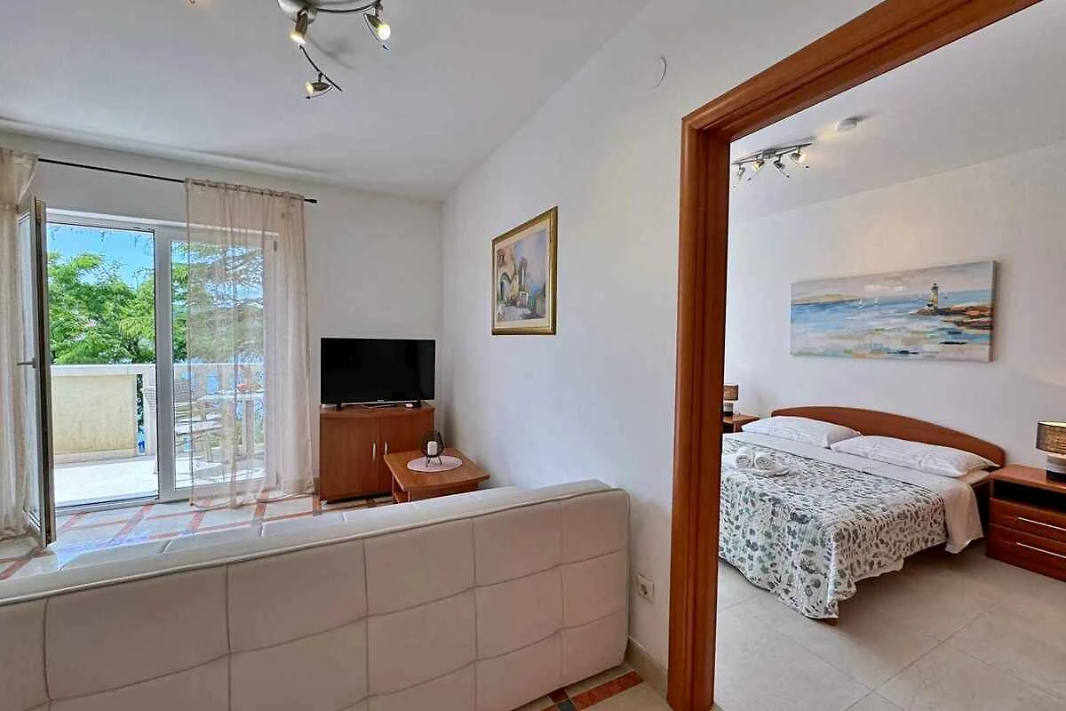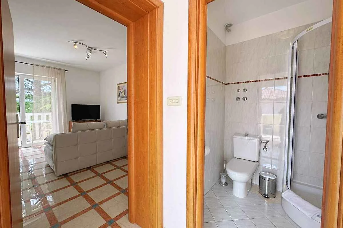 Das Ortszentrum liegt nur 400 Meter entfernt, der Sand- und Betonstrand erreichen Sie nach rund 40 Metern. Ein Restaurant finden Sie bereits nach 40 Metern, während ein Markt und eine Bushaltestelle jeweils etwa 260 beziehungsweise 400 Meter entfernt sind. Die nächste Apotheke befindet sich in 650 Metern, die nächste Ambulanz in 580 Metern Entfernung. Der nächstgelegene Flughafen in Rijeka ist circa 22 Kilometer entfernt, der Fährhafen Valbiska etwa 23 Kilometer.