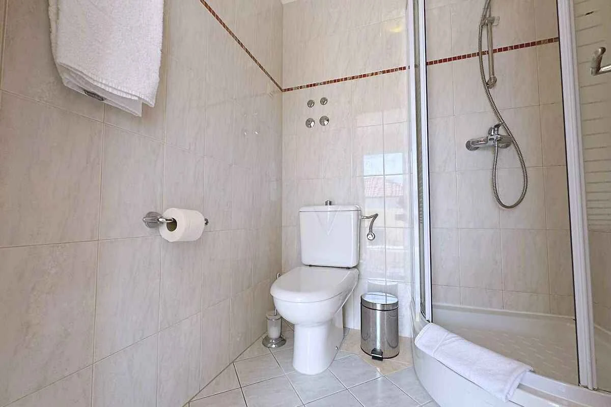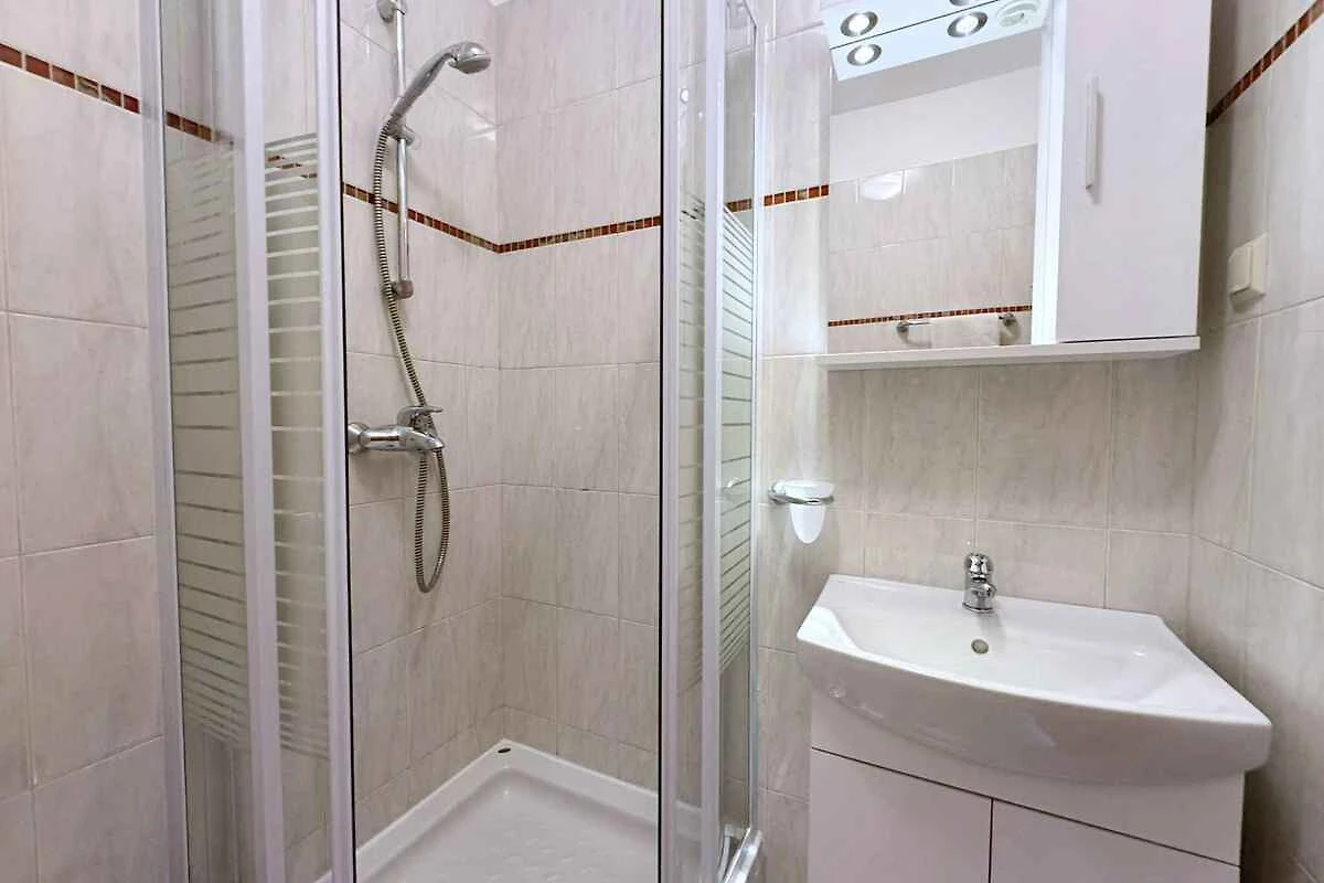 Das Apartment ist mit einem Badezimmer mit Dusche ausgestattet. Die Küche ist komplett eingerichtet mit Kühlschrank, Gefrierschrank, Backofen, Herd, Mikrowelle, Geschirrspüler, Wasserkocher, Kaffeemaschine sowie Geschirr und Besteck. Es stehen zwei zusätzliche Schlafgelegenheiten in Wohn- oder Essbereich zur Verfügung. Ein Haartrockner ist vorhanden.