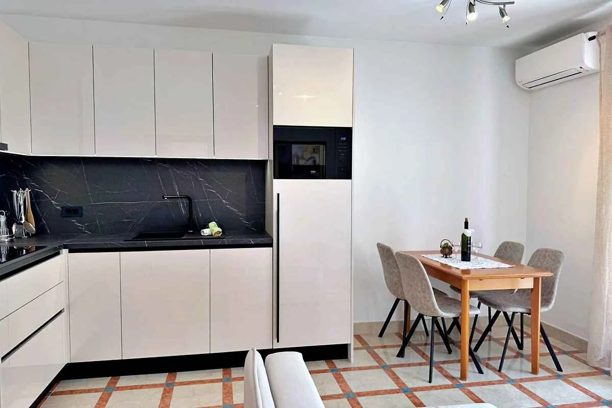 Das Apartment verfügt über teilweise klimatisierte Räume, kostenfreies WLAN und einen Satellitenfernseher. Für Familien ist auf Anfrage ein Babybett verfügbar. Die Reinigung erfolgt nach örtlichen Hygienerichtlinien inklusive Desinfektion zwischen den Aufenthalten. Ein Erste-Hilfe-Set, Handdesinfektionsmittel sowie Gesichtsmasken sind vorhanden. Die Gastgeber halten sich strikt an alle Sicherheitsprotokolle der lokalen und europäischen Behörden. Der Check-in erfolgt ab 14 Uhr, der Check-out bis 10 Uhr. Ein Grill steht zur Verfügung, ebenso ist eine Aussendusche vorhanden. Die Unterkunft ist rollstuhlgerecht und verfügt über Parkmöglichkeiten in 50 bis 150 Metern Entfernung. Ein Bootsanleger kann bei Bedarf vorab über die Agentur reserviert werden.