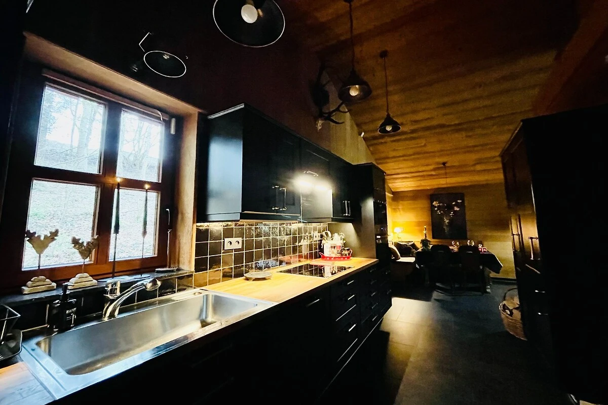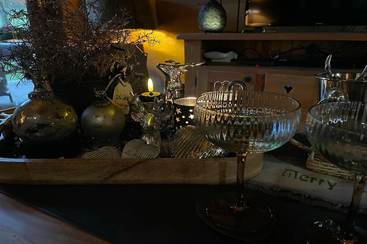 Parterre: (Aufenthaltsraum(TV(Kabel), Herd(Holz), DVD-Spieler), Küche(Kochherd(4 Kochplatten, Induktion), Kaffeemaschine(pads), Backofen, Mikrowelle, Spülmaschine, Kühl-/Gefrierkombination), Schlafzimmer mit Badezimmer(Doppelbett, Whirlwanne, Dampfdusche, Waschbecken), Toilette(Waschbecken, Toilette))