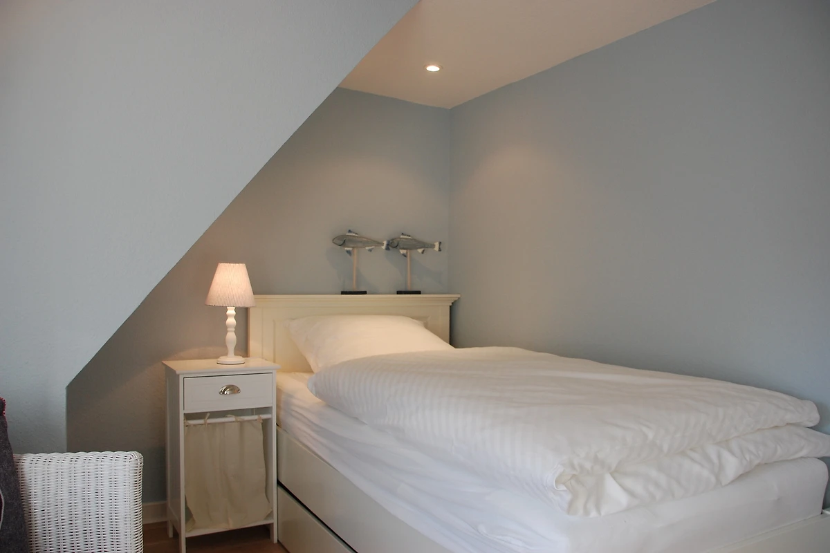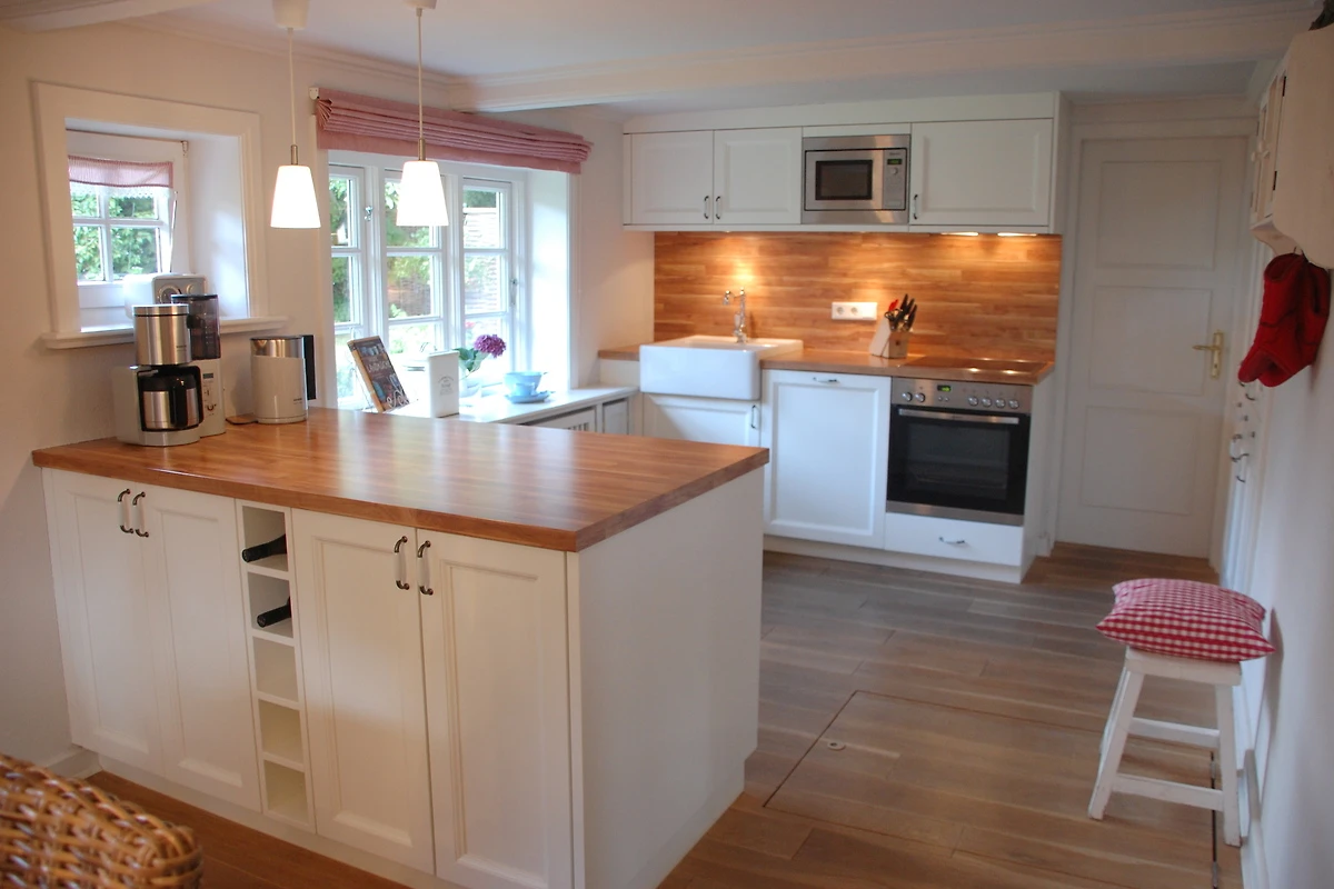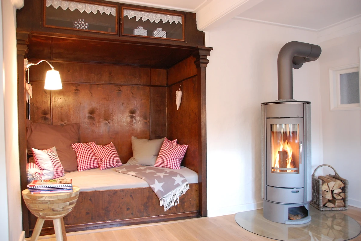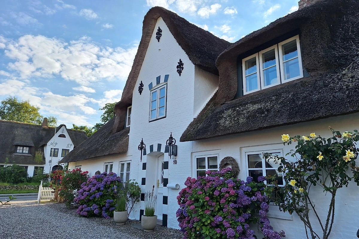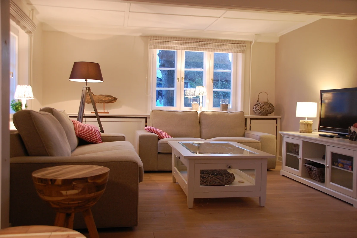 Wyk begeistert mit Sandstrand, Promenade und direktem Blick auf die Nordsee. Friesisches 5-Sterne Reetdachhaus aus dem Jahre 1850 mit original historischem Alkoven und typisch für historische Reetdachhäuser niedrigen Decken.