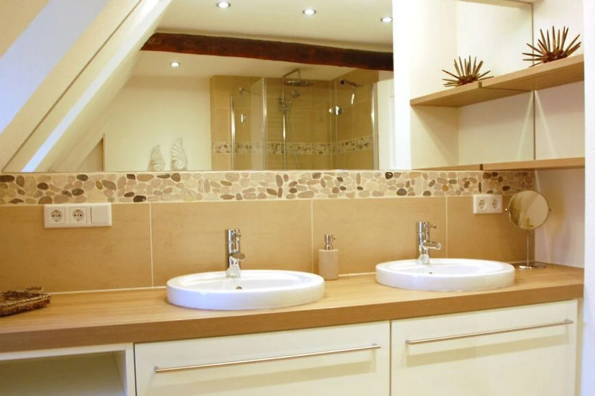 Im Jahre 2011 wurde das Haus komplett restauriert und mit Eichendielen ausgestattet. Im Erdgeschoss befindet sich die hochwertige Landhausküche mit eingebautem Büffetschrank die keine Wünsche offen lässt. Angrenzend daran befindet sich der großzügige und helle Essbereich. Im Wohnbereich tragen helle und ruhige Töne zu ihrem Wohlbefinden bei. Hier befindet sich auch das Herzstück des Hauses, ein original historischer Alkoven, eine wunderbare Rückzugsmöglichkeit zum Lesen und Entspannen. Weiterhin verfügt das Haus über ein Gäste-Wc, eine Sauna mit Dusche und einem Ruheraum, wo Sie Erholung für Körper und Geist finden. Im Obergeschoss befinden sich 4 Schlafzimmer. Hier finden Sie auch das großzügige und moderne Bad mit Dusche und Wc. Die Treppe ist im Obergeschosss mit einem Treppengitter gesichert.