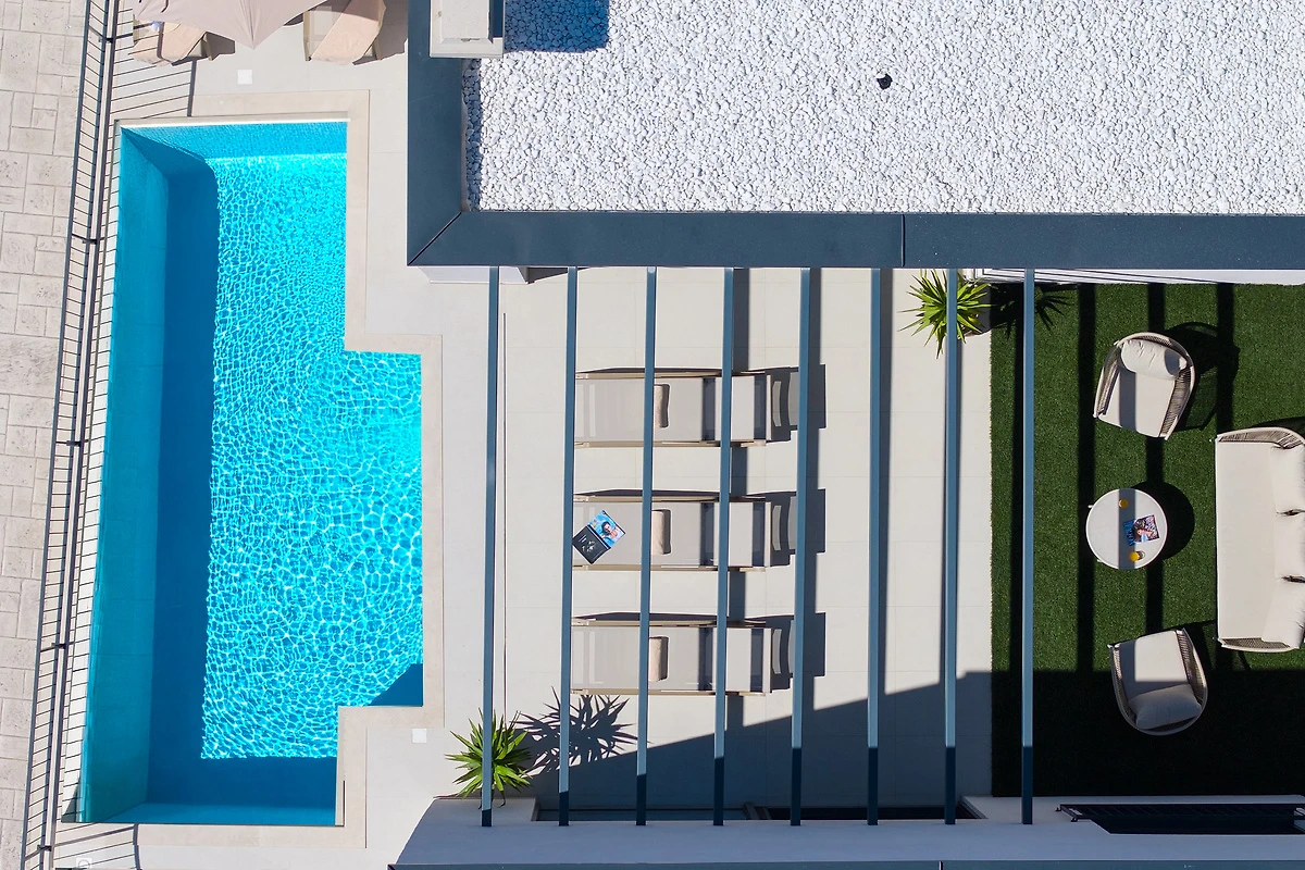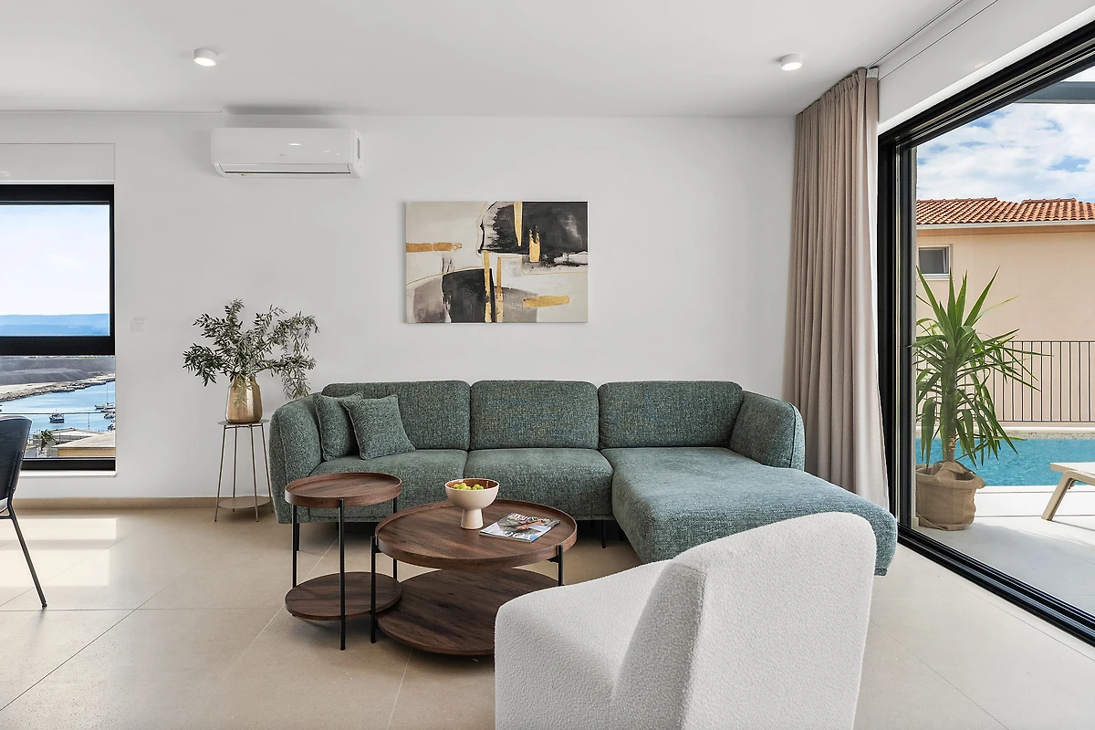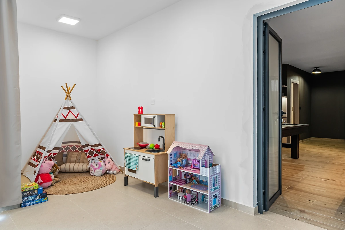 Der lichtdurchflutete Wohnbereich mit TV und kostenlosem WLAN ist ideal für entspannte Stunden. Eine Waschmaschine und ein Trockner erleichtern den Alltag, sodass Sie mehr Zeit für das Wesentliche haben. Ein Highlight ist der elegante Swimmingpool mit bequemen Sonnenliegen – perfekt zum Abkühlen und Sonnenbaden. Sportbegeisterte nutzen den hauseigenen Fitnessraum oder erkunden die Umgebung mit den bereitgestellten Fahrrädern. Für Wassersportler steht ein Boot zur Verfügung.