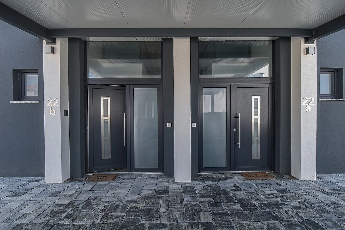 Der Außenbereich bietet ebenfalls alles für einen angenehmen Aufenthalt – ein eingezäuntes Grundstück für Privatsphäre, ein Grill für gesellige Abende sowie überdachte Parkplätze für Ihre Fahrzeuge.