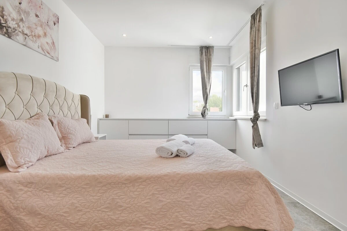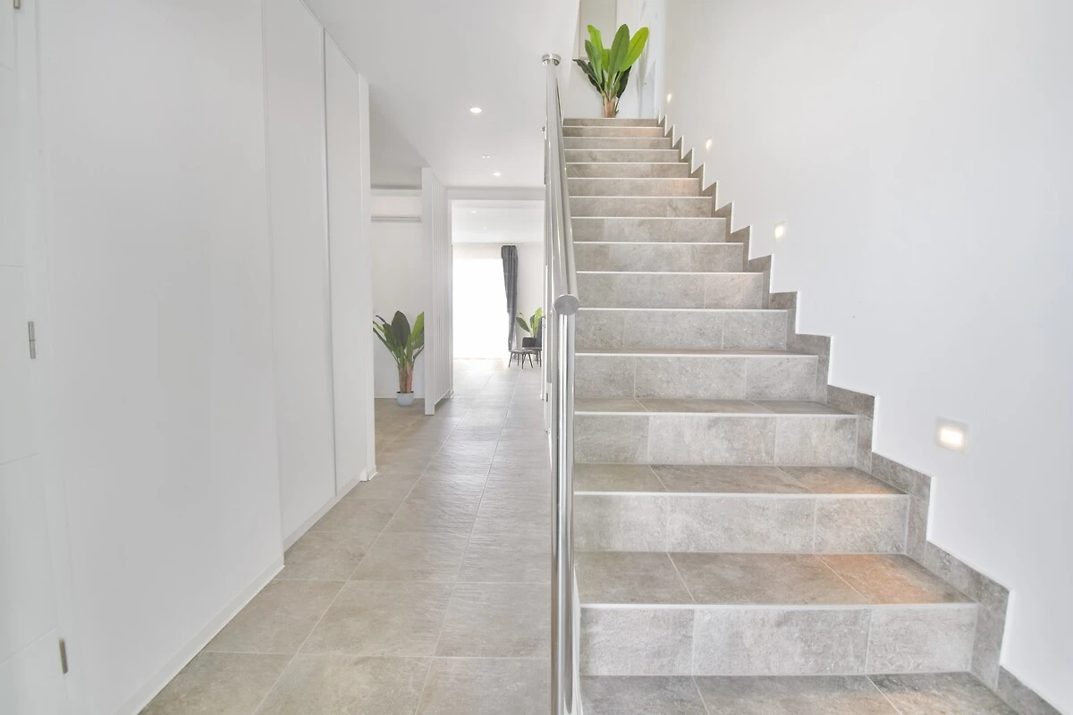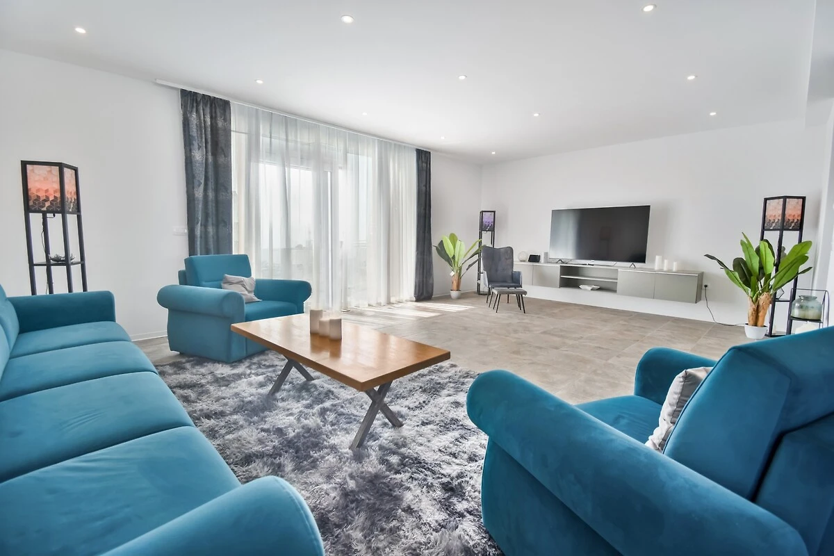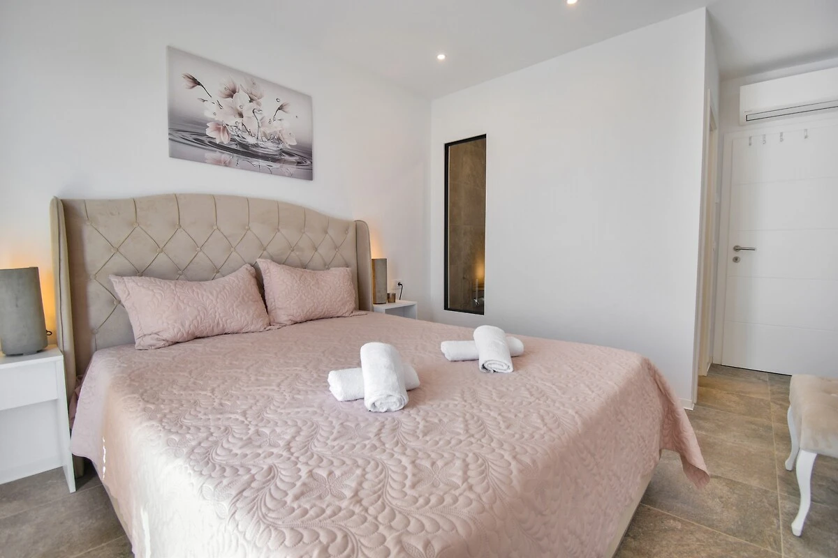 Es handelt sich um eine Duplex-Villa, wobei eine Haushälfte vermietet wird und den Gästen vollständige Privatsphäre garantiert. Die Villa bietet Platz für bis zu 6 Personen, und für größere Gruppen können auf Anfrage beide Einheiten zusammen gebucht werden.