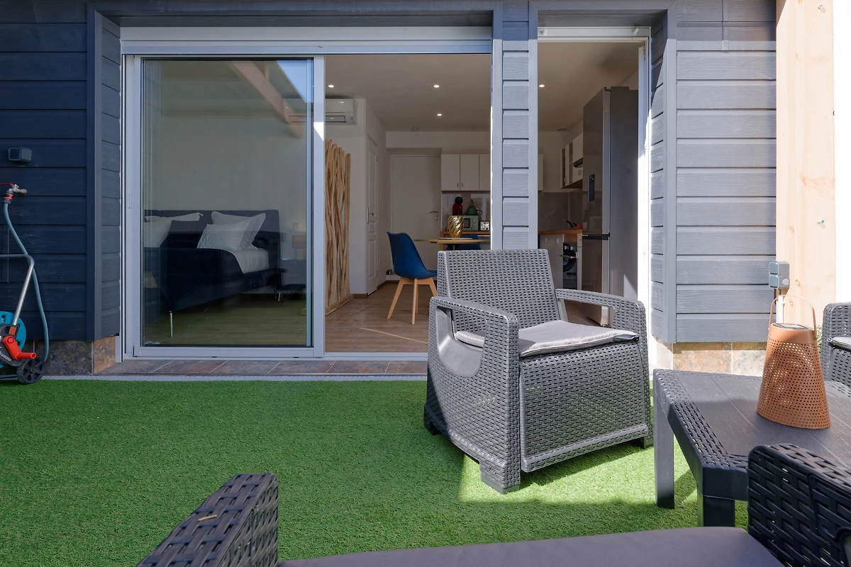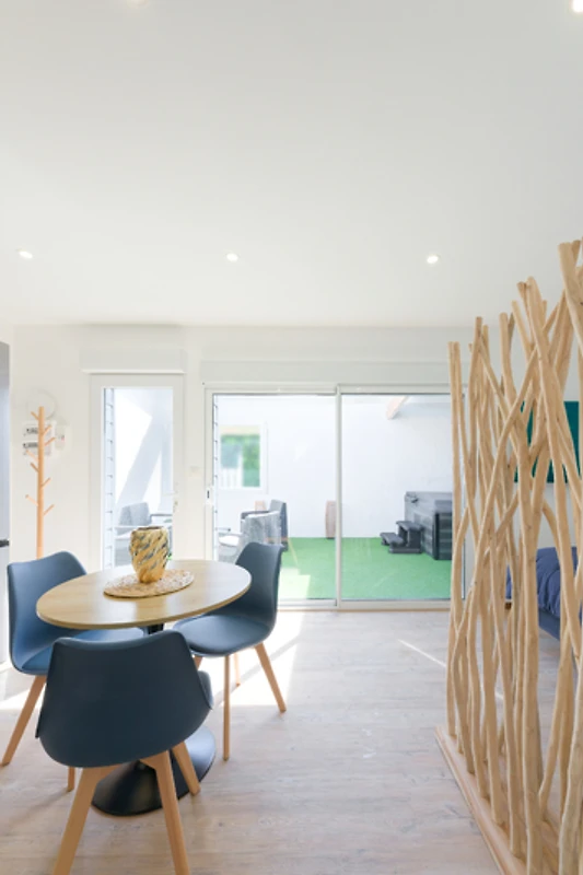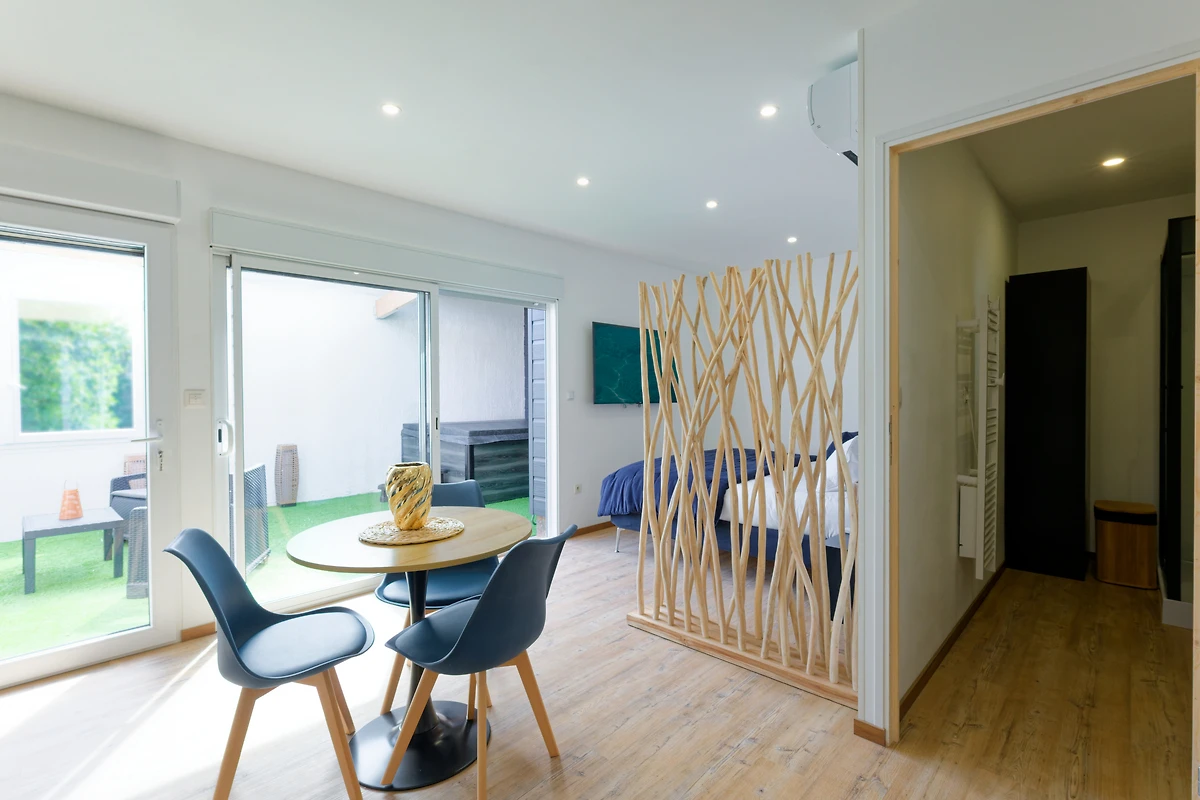 Willkommen in der Ferienwohnung Familienurlaub in Portbail sur Mer – Ihr Rückzugsort für entspannte Tage an der Küste! Die Unterkunft bietet auf 27 m² Platz für zwei Gäste und überzeugt mit einer klaren, freundlichen Raumgestaltung. Das separate Schlafzimmer sorgt für Privatsphäre, während das moderne Bad mit Haartrockner und frischen Handtüchern ausgestattet ist. Genießen Sie Ihr Frühstück auf der eigenen Terrasse oder entspannen Sie am Swimmingpool, der zu erfrischenden Momenten einlädt.