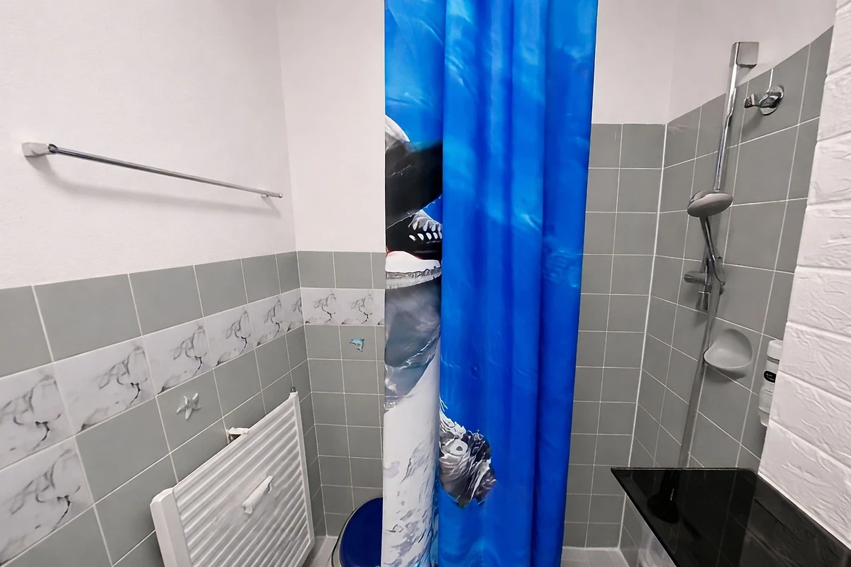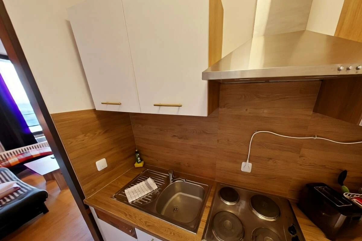 In der 2. Etage: (Küche(Kochplatte(4 Kochplatten, elektrisch), Wasserkocher, Toaster, Kaffeemaschine, Mikrowelle, Spülmaschine, Kühlschrank(+ Gefrierfach)), Wohn-/Schlafzimmer(Schlafcouch 1 Pers., Schrankbett für 2 Personen, TV), Badezimmer(Dusche, Waschbecken, Toilette, Föhn), Balkon)