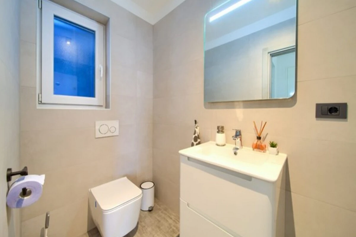 Ein weiterer Vorteil der Villa ist ihre ausgezeichnete Lage in der Nähe des malerischen Ortes Malinska, der zahlreiche Möglichkeiten zum Erkunden und für Freizeitaktivitäten bietet. Dort können Sie schöne Strände, kristallklares Meer, angenehme Spazierwege entlang der Küste und ein reichhaltiges Angebot an Restaurants und Cafés genießen. Die Gegend ist auch bekannt für kulturelle und natürliche Sehenswürdigkeiten, wie alte steinerne Kirchen, traditionelle Fischerdörfer und Aussichtspunkte, die atemberaubende Blicke auf die Kvarner-Bucht bieten.