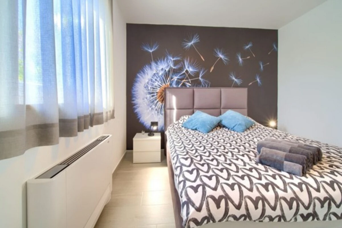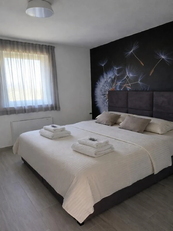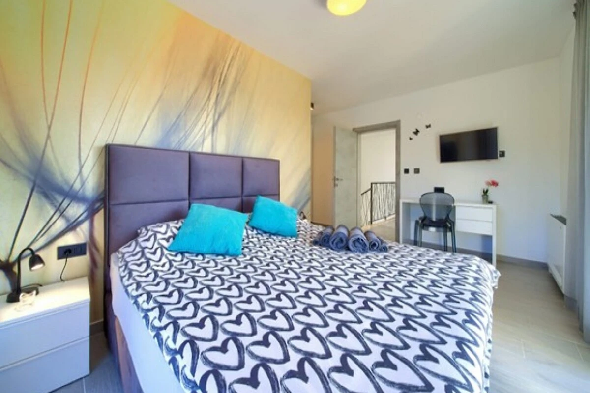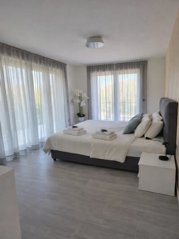 Im Obergeschoss der Villa erwarten Sie drei geräumige und elegant eingerichtete Schlafzimmer, jedes mit eigenem Badezimmer, was maximalen Komfort und Privatsphäre für alle Gäste garantiert. Die Zimmer sind hell, luftig und mit bequemen Betten, hochwertiger Bettwäsche und sorgfältig ausgewählten Details ausgestattet, die eine angenehme und entspannende Atmosphäre schaffen. Von den Schlafzimmern aus haben Sie Zugang zu Balkonen oder Terrassen, von denen Sie den wunderschönen Ausblick auf die Umgebung, das Grün und die ruhige Umgebung der Villa genießen können. Ein Kinderbett ist ebenfalls verfügbar, wodurch die Villa besonders für Familien mit kleinen Kindern geeignet ist.