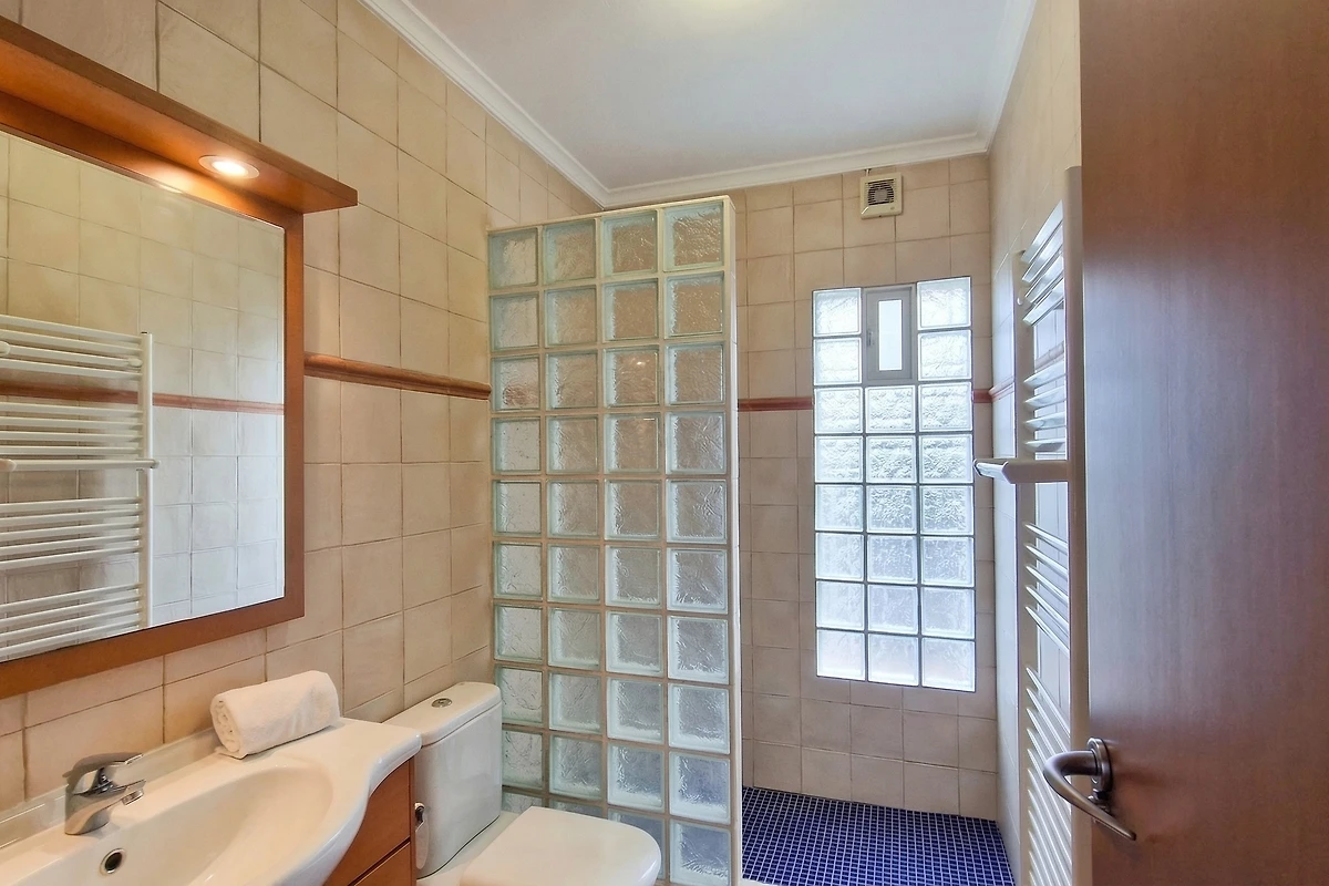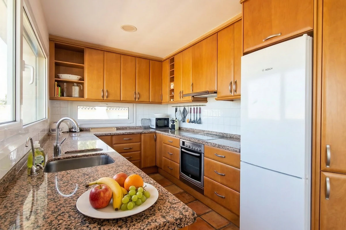 Das Ferienhaus verfügt über 3 Schlafzimmer und 2 Badezimmer, verteilt auf 2 unabhängigen Etagen, jede mit separatem Eingang. Ein schöner Garten mit Bäumen umrunden den Pool und den Aussenbereich. Der Pool verfügt über eine Wärmepumpe die im Frühling und im Herbst zugeschaltet werden kann um die Wassertemparatur zu erhöhen (es gibt keine Abdeckung - Nutzung der Wärmepumpe gegen Aufpreis). Auf der oberen Hauptetage (Poolebene) befindet sich ein Schlafzimmer und ein Badezimmer und in der unteren Wohnung gibt es 2 Schlafzimmer, sowie ein Badezimmer.