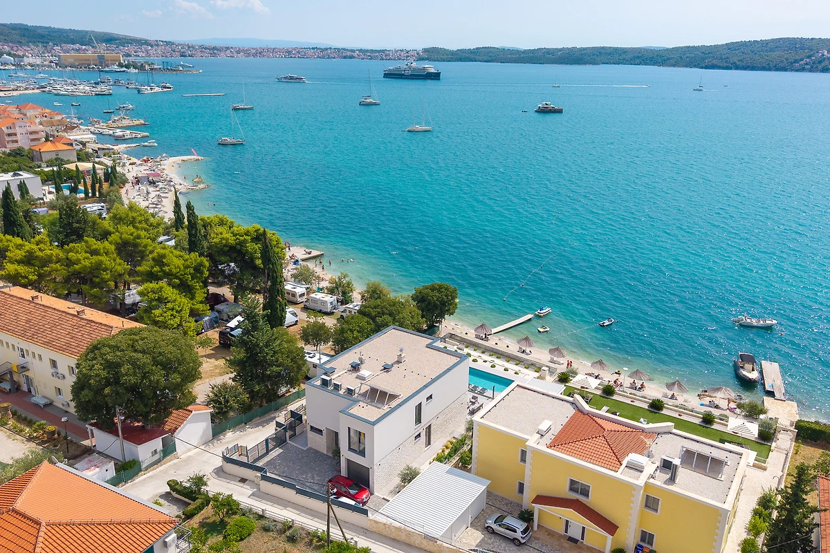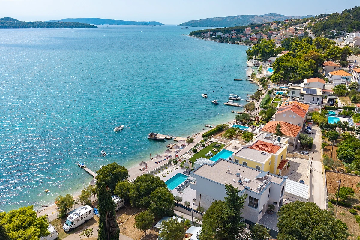 Die Villa Luminara ist ideal am Seget-Strand gelegen, nur 2,6 km von der charmanten UNESCO-Stadt Trogir entfernt, die mit ihren reizvollen Geschäften, Restaurants und Bäckereien zum Flanieren einlädt.