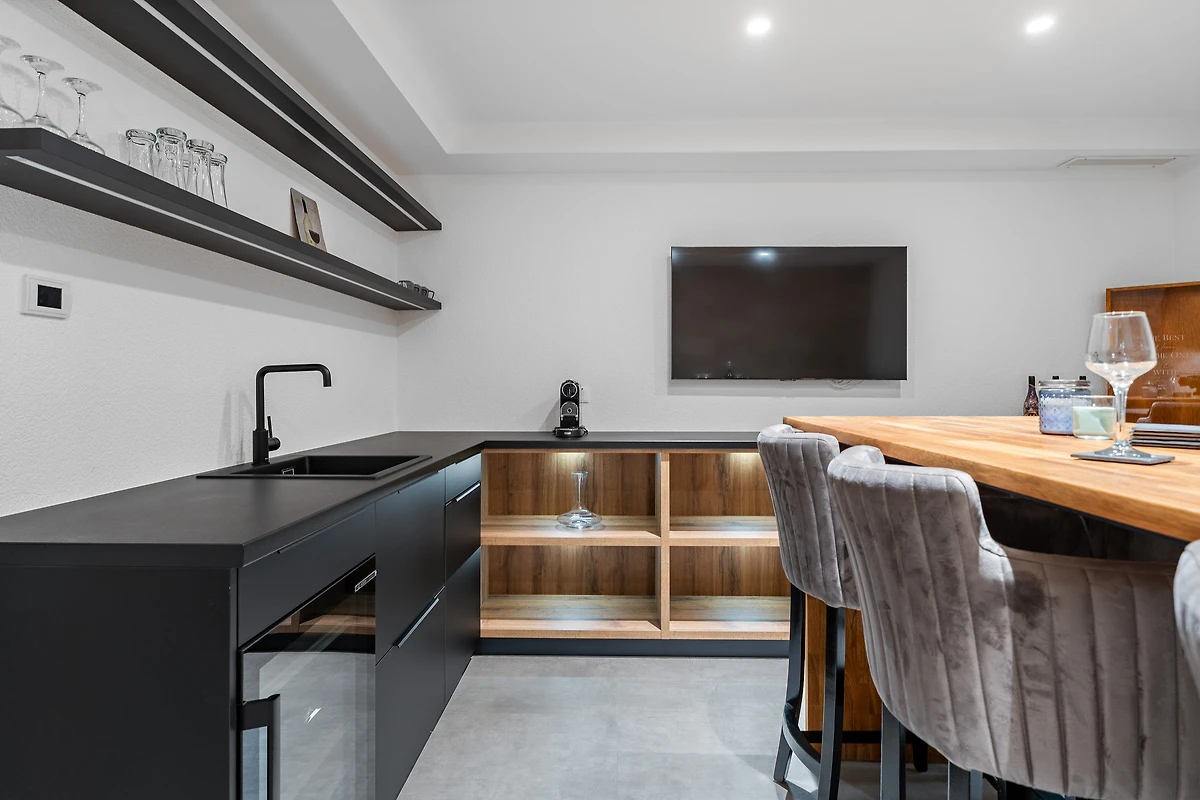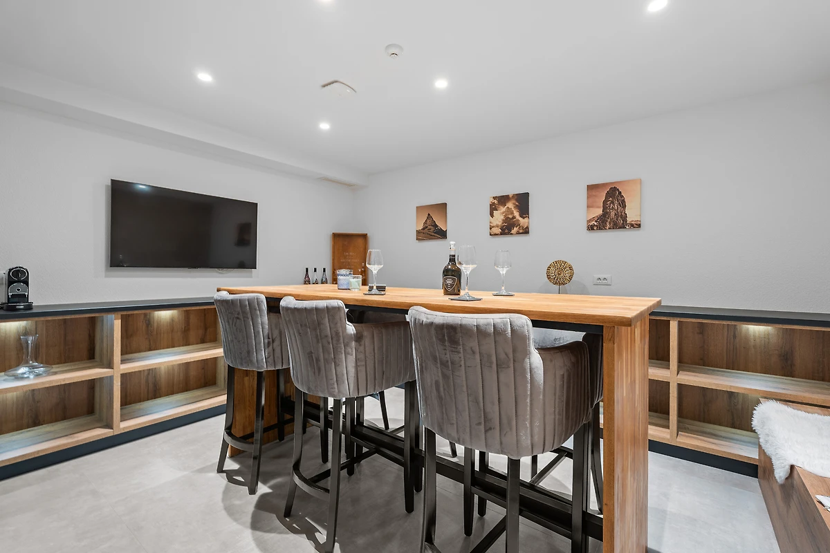 – Einen Bartisch und einen Fernseher zur Unterhaltung