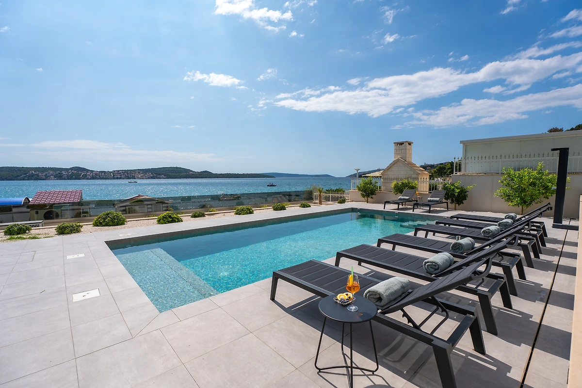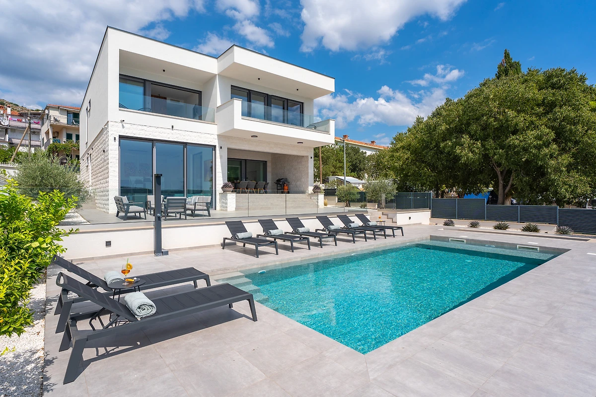 Mit ihrer erstklassigen Ausstattung und der hervorragenden Lage ist diese Villa ideal für Familien oder Gruppen von Freunden, die Entspannung und Abenteuer suchen. Freuen Sie sich auf eine stilvolle Villa mit 4 Schlafzimmern, hochwertiger Einrichtung, beheiztem Pool, finnischer Sauna, Tischtennis, PS5, Weinkeller sowie atemberaubendem Meerblick. Genießen Sie erstklassige Annehmlichkeiten, die Nähe zu Trogir und Split sowie maßgeschneiderte Services für einen perfekten Aufenthalt in Kroatien!