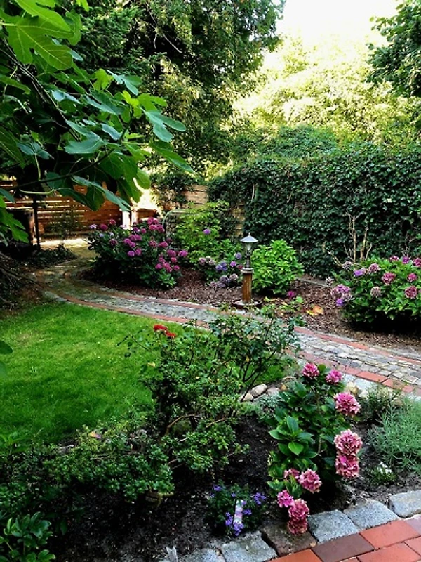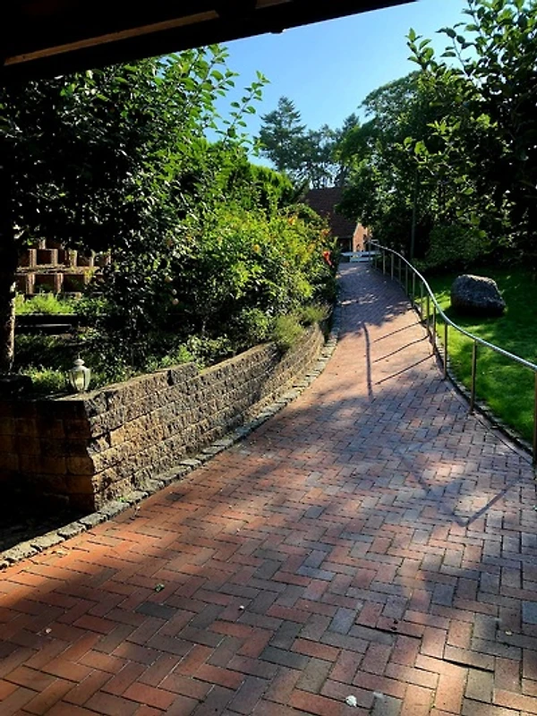 Das Haus Butenland befindet sich freistehend auf großem Gartengrundstück.
