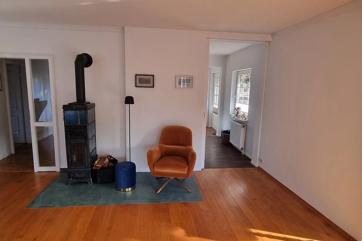 Auf großzügigen 115 m² befinden sich alle Räume ebenerdig. Im sehr großen, lichtdurchfluteten Wohnraum, mit Essbereich, befinden sich die Ledercouch, der 65 Zoll TV mit Soundbar, der massive Echtholztisch mit sechs Stühlen, der Ofen, verschiedene Sitzecken und der Zugang zur Südterrasse.