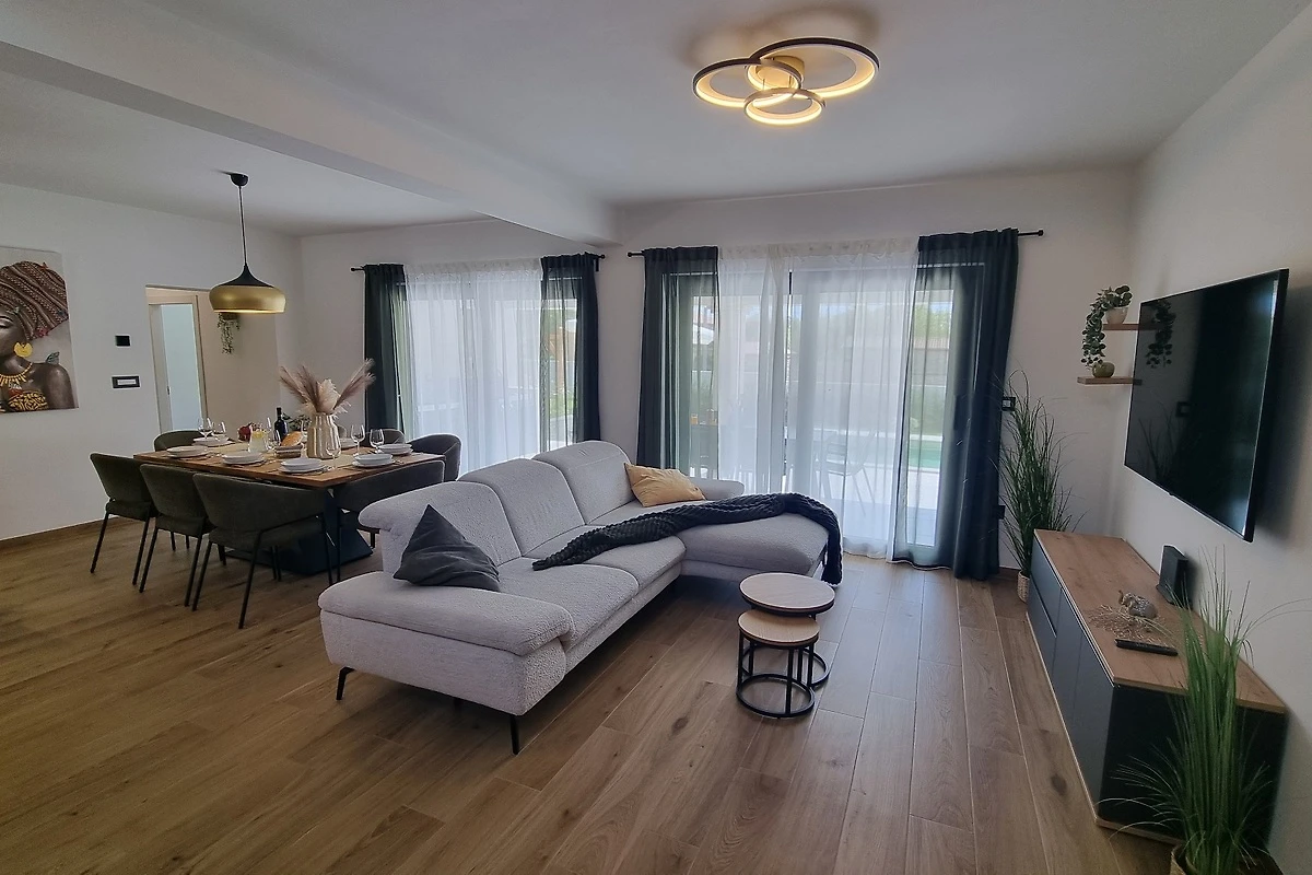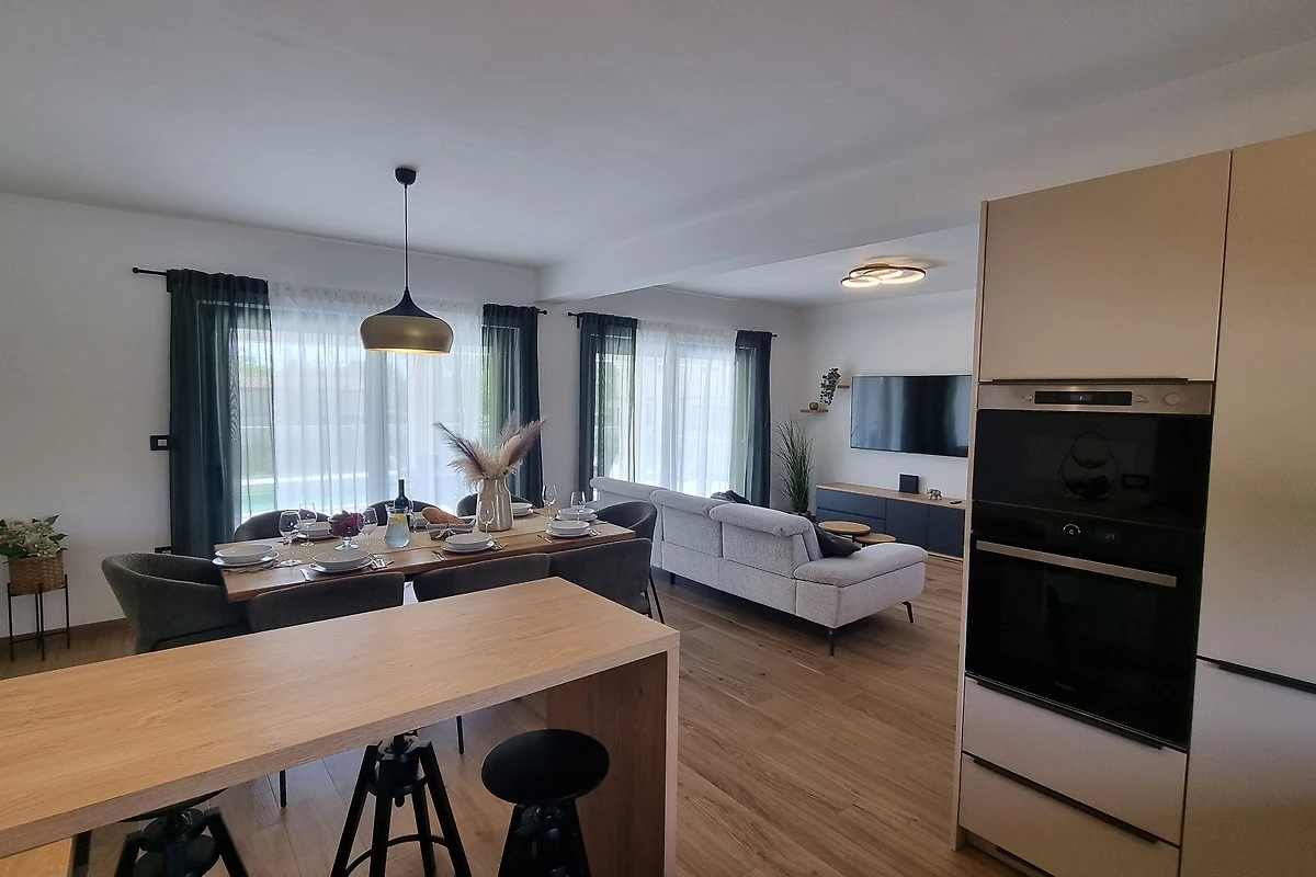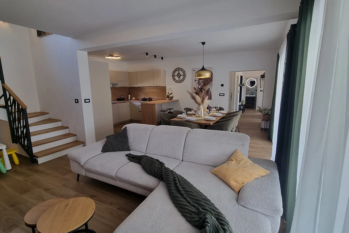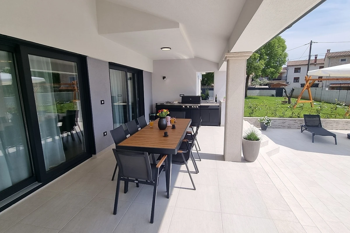 Willkommen im Ferienhaus Erholungsurlaub Žminj, Ihrem perfekten Rückzugsort im Herzen Istriens. Hier erwartet Sie ein großzügiges Haus mit 190 m² Wohnfläche für bis zu 8 Gäste. Vier komfortable Schlafzimmer und drei moderne Badezimmer sorgen für Privatsphäre und Bequemlichkeit. Genießen Sie entspannte Stunden auf der sonnigen Terrasse oder dem Balkon, während Ihre Kinder im privaten Swimmingpool planschen. Für gesellige Abende steht Ihnen ein BBQ-Grill zur Verfügung, und auf dem Grundstück finden Sie einen eigenen Parkplatz.