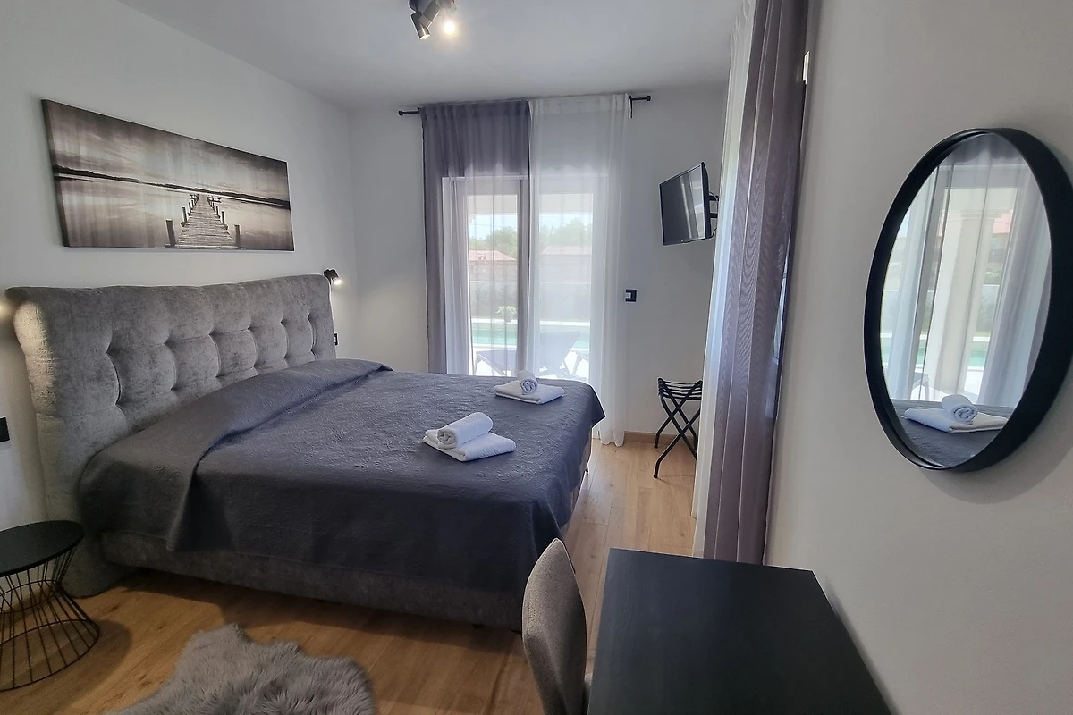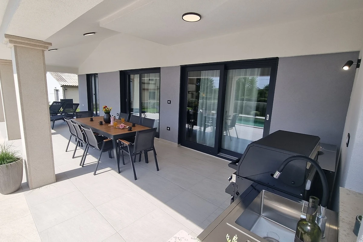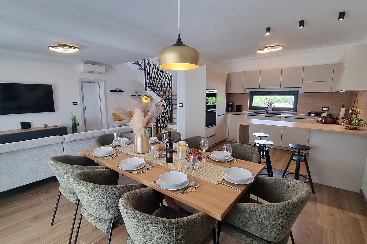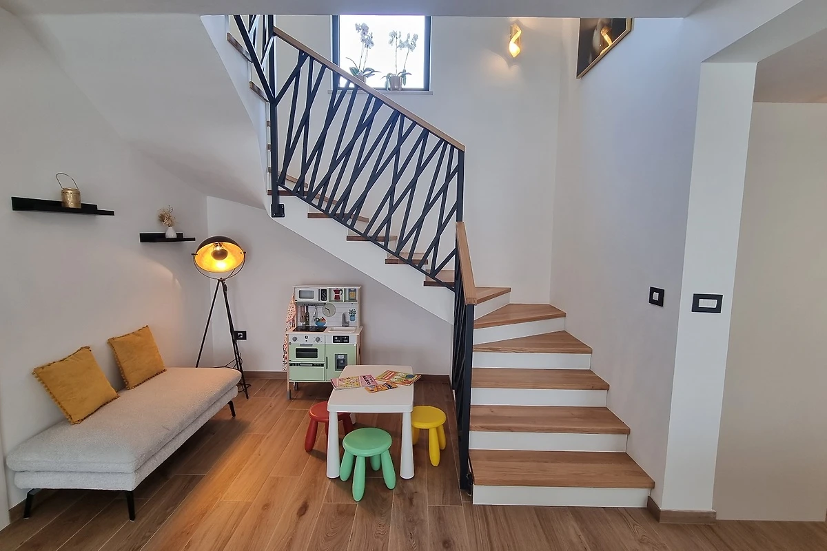 Willkommen im Ferienhaus Erholungsurlaub Žminj, Ihrem perfekten Rückzugsort im Herzen Istriens. Hier erwartet Sie ein großzügiges Haus mit 190 m² Wohnfläche für bis zu 8 Gäste. Vier komfortable Schlafzimmer und drei moderne Badezimmer sorgen für Privatsphäre und Bequemlichkeit. Genießen Sie entspannte Stunden auf der sonnigen Terrasse oder dem Balkon, während Ihre Kinder im privaten Swimmingpool planschen. Für gesellige Abende steht Ihnen ein BBQ-Grill zur Verfügung, und auf dem Grundstück finden Sie einen eigenen Parkplatz.