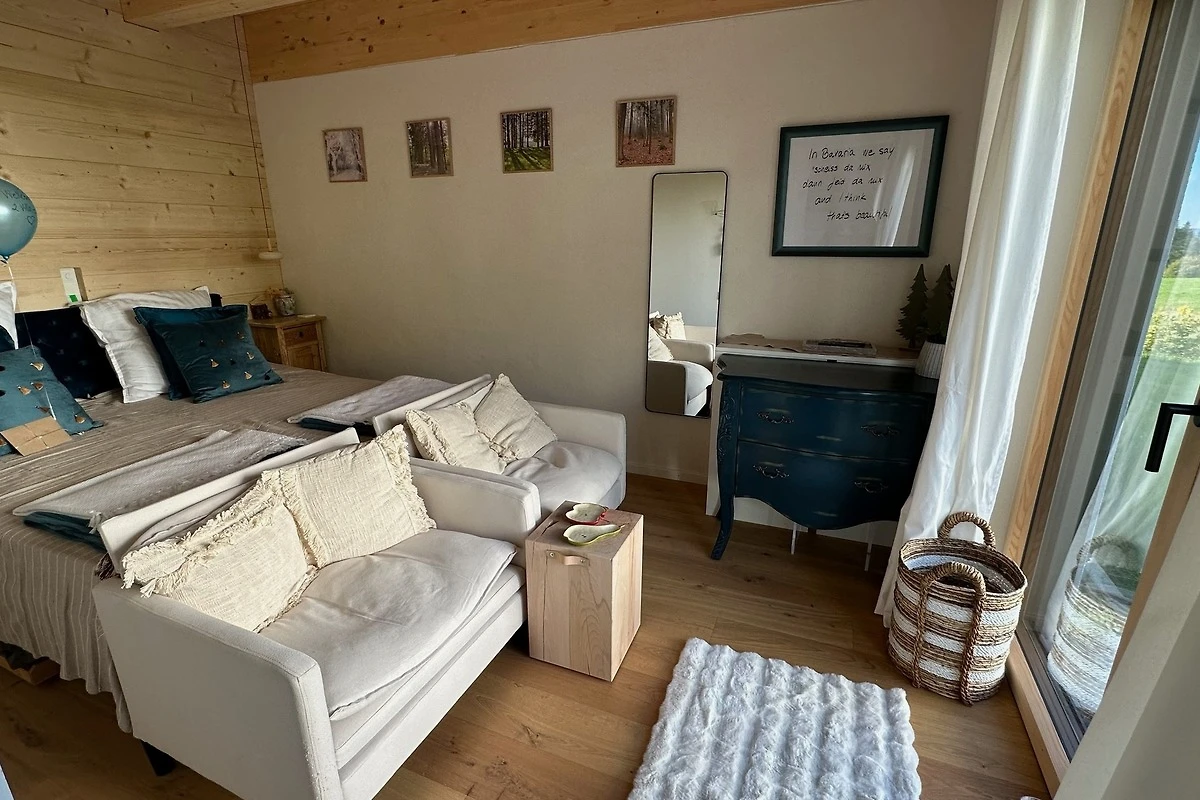 Unser ökologisch und klimapositiv konzipiertes Haus wurde 2024 in moderner Holzständerbauweise fertiggestellt und überzeugt mit einem natürlichen, gesunden Wohnklima. Die hocheffiziente Dämmung und der nachwachsende Rohstoff Holz sorgen für besonders niedrigen Energieverbrauch und eine ausgezeichnete Umweltbilanz. Solarstrom aus unserer eigenen Photovoltaikanlage wird vor Ort gespeichert und versorgt das gesamte Haus zuverlässig mit sauberer Energie – sollte das einmal nicht ausreichen, beziehen wir garantiert zu 100% regenerativ erzeugten Strom. Und natürlich können Gäste ihr Elektroauto direkt bei uns komfortabel laden. Damit vereint unser Zuhause nachhaltiges Wohnen und echte Zukunftsfähigkeit für Mensch und Natur. Geniessen Sie nach einem tollen Tag die wunderbare Regendusche, lassen Sie sich von den Flammen des elektrischen Kamins verzaubern oder lassen Sie den Tag auf der 30 qm grossen Terrrasse ausklingen.