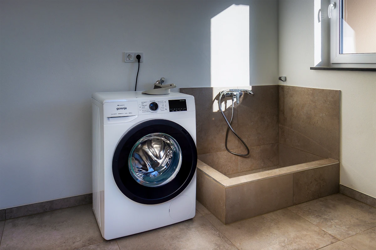 Für zusätzlichen Komfort stehen Ihnen im Technikraum eine Waschmaschine sowie ein Wäscheständer zur Verfügung. Direkt vor dem Haus befinden sich Parkmöglichkeiten für etwa zwei Fahrzeuge. Ihre Fahrräder können Sie sicher in einer abschließbaren Unterstellmöglichkeit mit Stromanschluss für E-Bikes unterbringen.