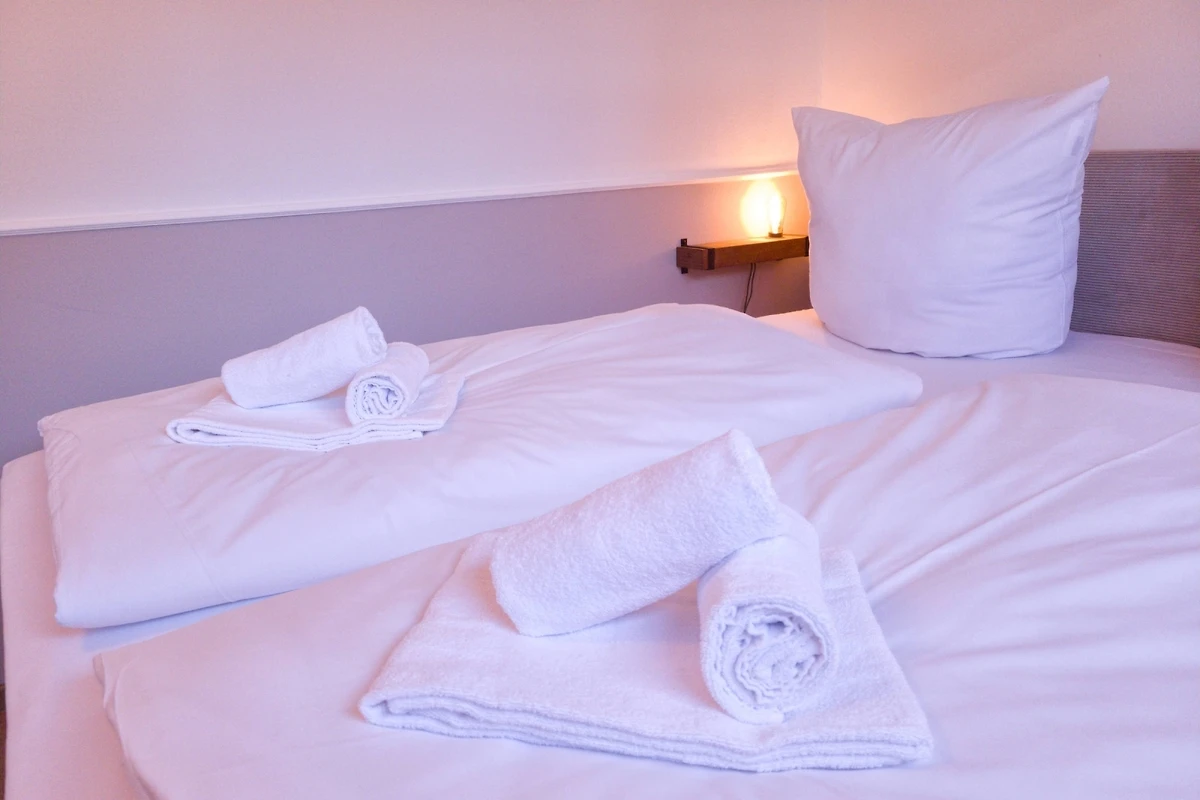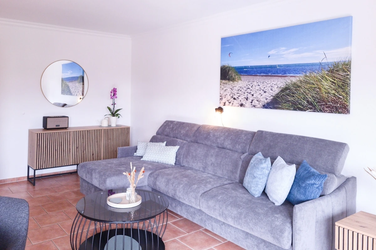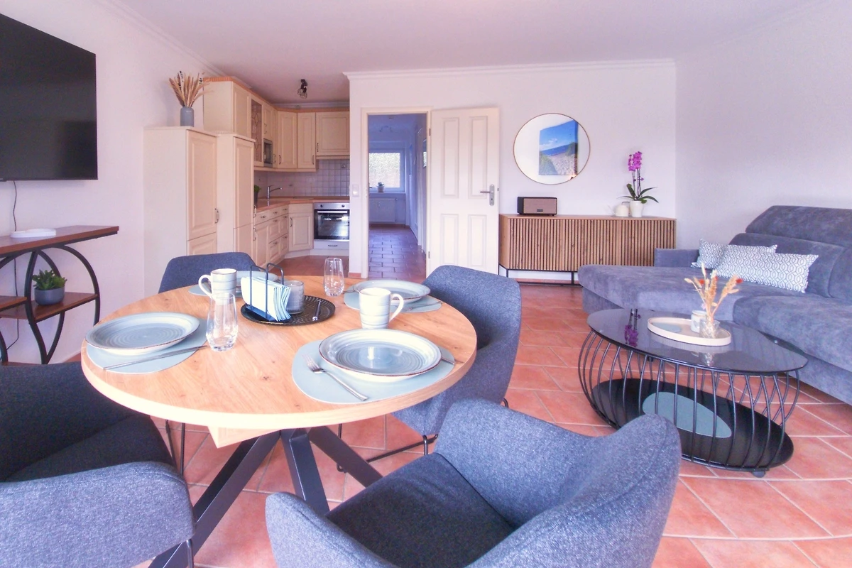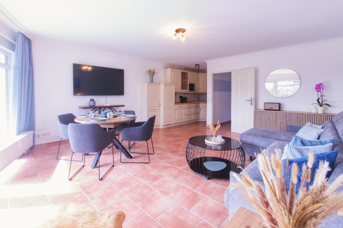 Die offene Küche ist mit einer Küchenzeile, Geschirrspüler, Mikrowelle, Wasserkocher und Kaffeemaschine ausgestattet – perfekt für gemeinsame Kochabende. Im Wohnbereich erwartet Sie ein TV für gemütliche Filmabende, während kostenfreies WLAN jederzeit für Unterhaltung und Information sorgt. Für Familien stehen ein Babybett (kostenpflichtig) und ein Hochstuhl bereit. Bettwäsche und Handtücher sind inklusive, sodass Sie entspannt anreisen können.