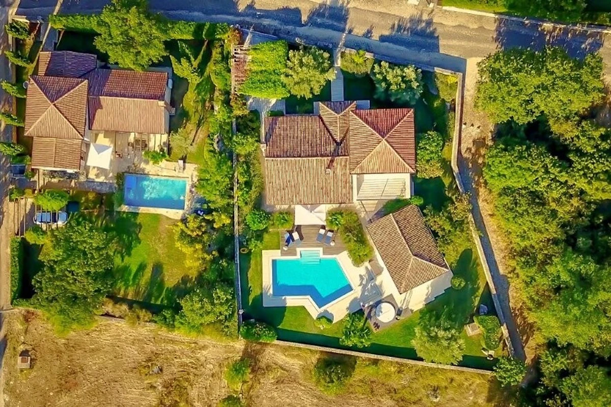 Villa Casa Villino für 6 Personen ist im traditionellen Stil gebaut und erstreckt sich über zwei klimatisierte Etagen mit einer Gesamtfläche von 240 m². Im Erdgeschoss befindet sich ein gemütliches Wohnzimmer mit Holzkamin, eine voll ausgestattete Küche mit Essbereich, alles in einem Raum mit Ausgang zur schöne überdachte Terrasse und Pool. Ein Schlafzimmer mit Dusche/WC und Terrasse befindet sich auch im Erdgeschoss. Im ersten Stock des Hauses befinden sich eine geräumige Schlafzimmer, ein Badezimmer und Balkon mit wunderschönen Panoramameerblick. In einem separaten Gebäude neben dem Pool befindet sich ein drittes Schlafzimmer mit eigenem Badezimmer.