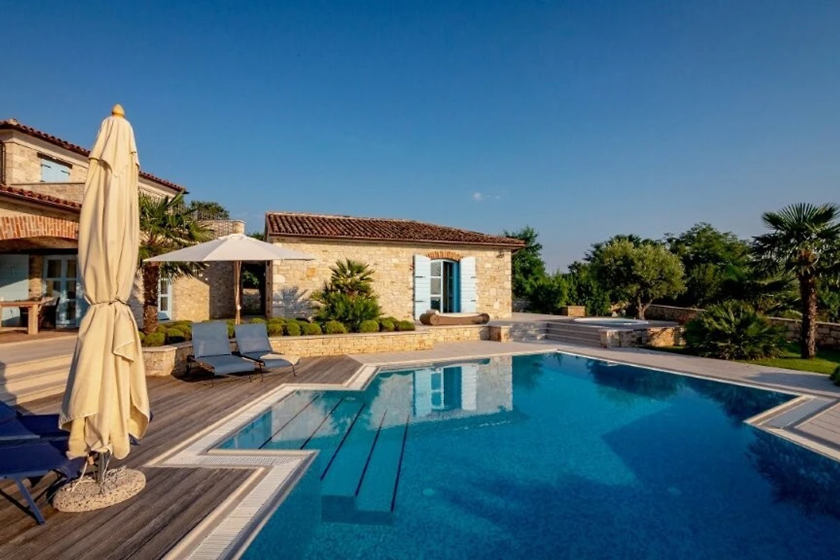 Diese autentische istrische Steinhaus befindet sich im grünen Binnenland Istriens, im Ort Sveti Lovreč ca. 14 km vom Porec und den Stränden entfernt. Das nächste Restaurant und Lebensmittelgeschäft sind zu Fuss erreichbar und der Lim-Kanal ist 8 km entfernt. Die Villa liegt auf einem eingezäunten Grundstück von 1200 m² und bietet zahlreiche Annehmlichkeiten, die die Bedürfnisse jedes Gastes erfüllen. Ein 55 qm großer Salzwasserpool, einen eingebautem Jacuzzi, überdachte Terrasse mit Essbereich, Grill und ein Sonnendeck mit Liegestühlen sind nur einige der Elemente, die den Außenbereich vervollständigen. Innerhalb des umzäunten Grundstücks gibt es Parkplätze für 2 Fahrzeuge.