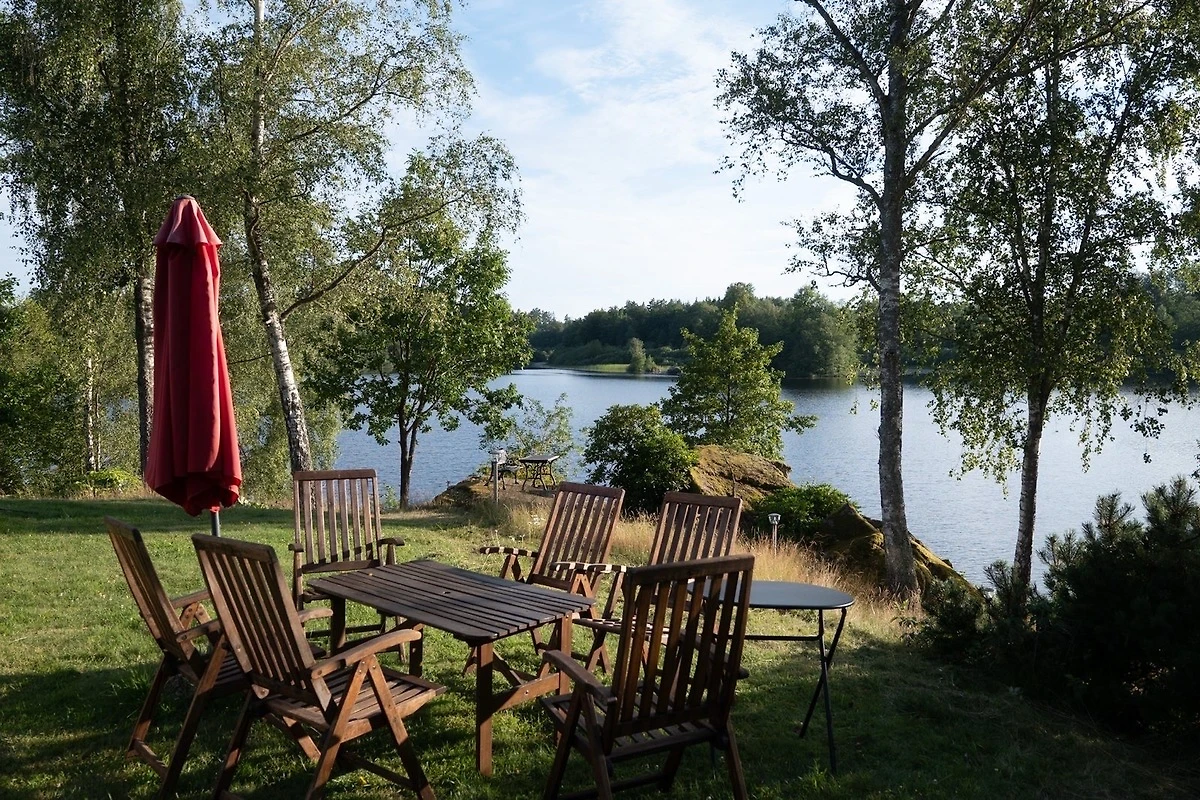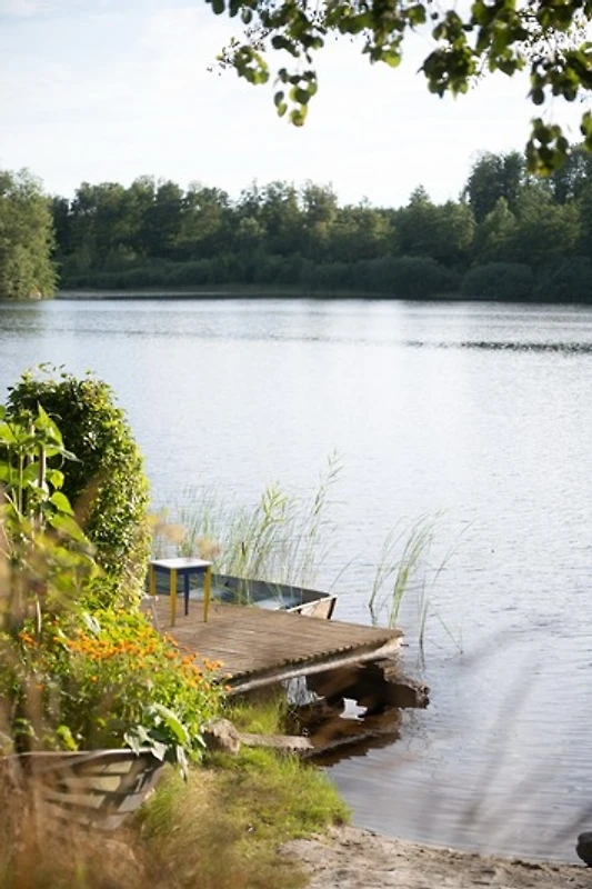 Das Haus liegt 50 m vom wenig befahrenen Getabergsvägen entfernt, etwa 10 m über dem See. Das Haus liegt allein am See auf einem ca. 3500 qm großen Grundstück mit Baumbestand. Das Haus ist zum See hin nach Süden ausgerichtet. 800m zum nächsten Bauernhof. 9 km nach Asarum mit allen Einkaufsmöglichkeiten, Bank, Kirche etc., 14 km bis Karlshamm mit Hafen an der Ostsee.