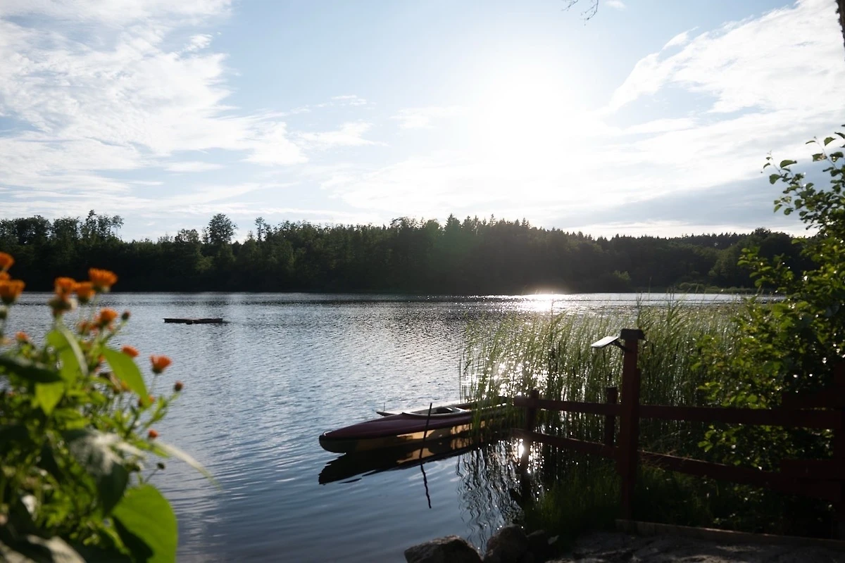Am See steht eine 2021 gebaute Sauna mit Ruheraum. Sie wird elektrisch beheizt.