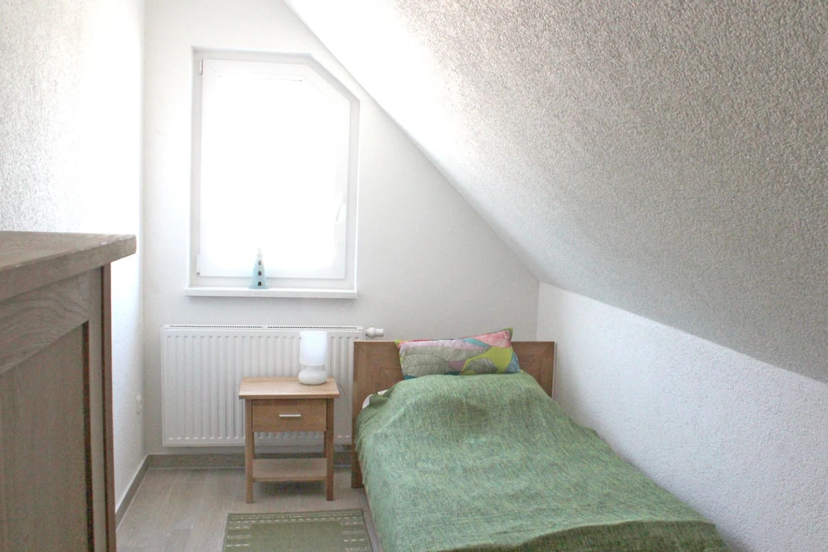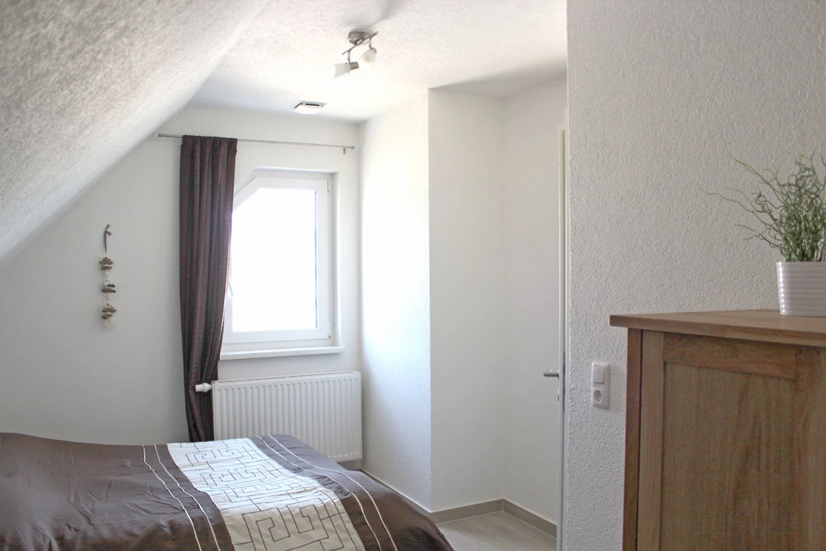 Die Doppelhaushälfte hat 2 Schlafzimmer und ein Wohnzimmer mit Küche und ist für max. 5 Personen ausgestattet. Das Grundstück mit Terrasse ist eingezäunt. Die Haushälfte verfügt über 2 Fernsehgeräte und im Gäste-WC im Erdgeschoss finden Sie eine Waschmaschine für die kleine Wäsche; für Familien mit Kindern eine angenehme Erleichterung. Sehr schön ist auch die Terrasse mit den Terrassenmöbeln und das Gartenhäuschen in dem Ihre Fahrräder eingeschlossen werden können.