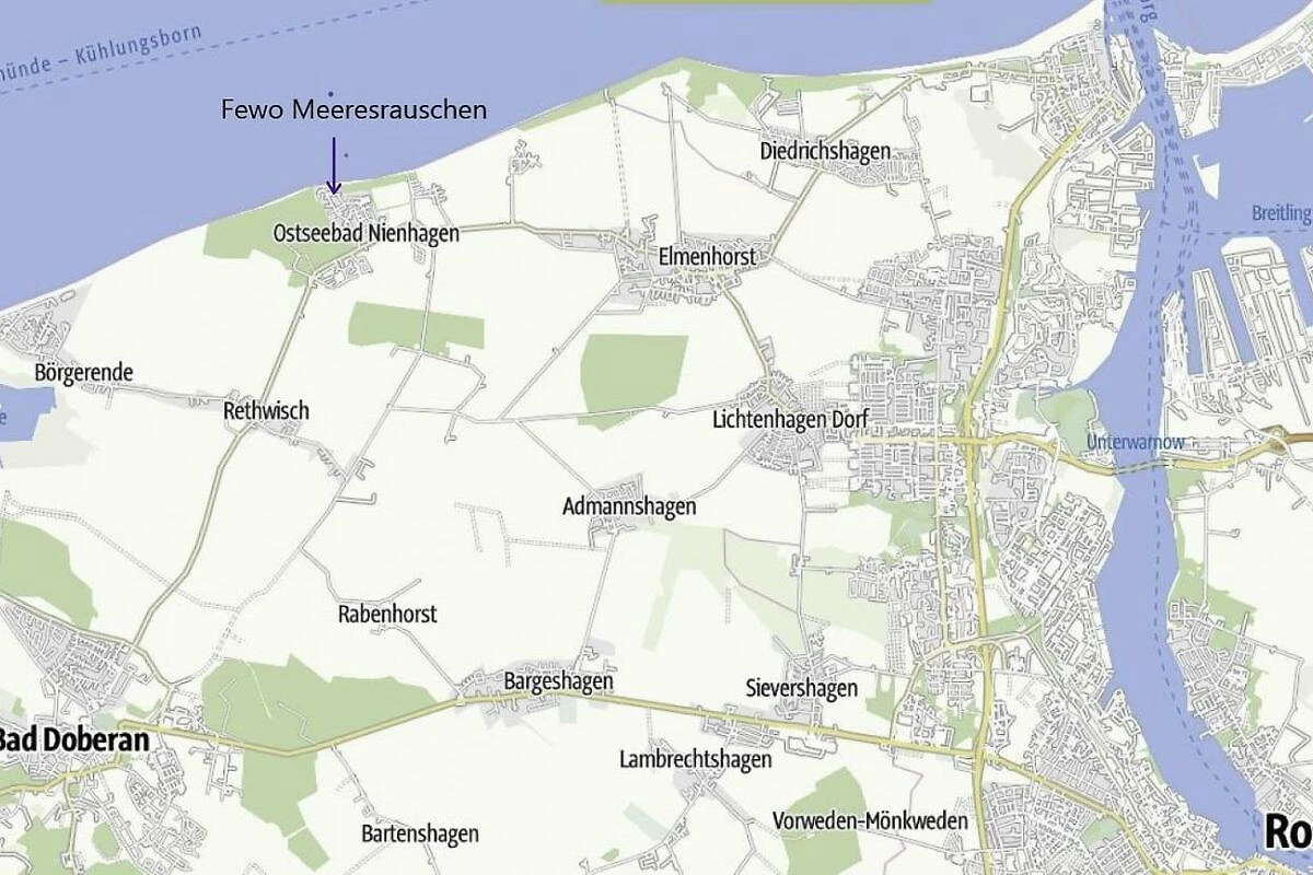 Aus Berlin: A19 → Kreuz Rostock → A20 Richtung Lübeck → Ausfahrt 13 Bad Doberan/Schwaan → Bad Doberan → Warnemünde → Rethwisch → Ostseebad Nienhagen.